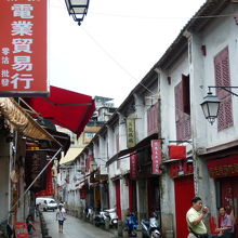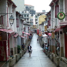 今日はマカオに来ています。マカオの観光と言えば、数多くある世界遺産ですね。ぐるーと回っています。ここ「福隆新街」は世界遺産とは違いますが、途中に尋ねました。新馬路の西側にある通りで、約200mに長屋造りの中国風の建物が並んでいます。昔の歓楽街の街並みを残し、今はレストランやお土産店が並び、観光客の撮影には他にない場所ですね。