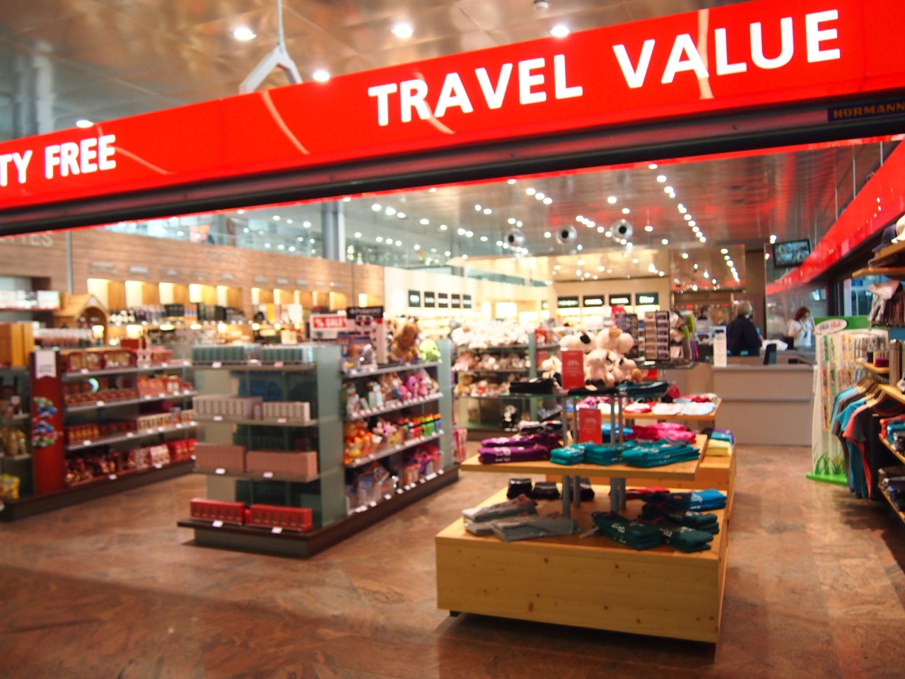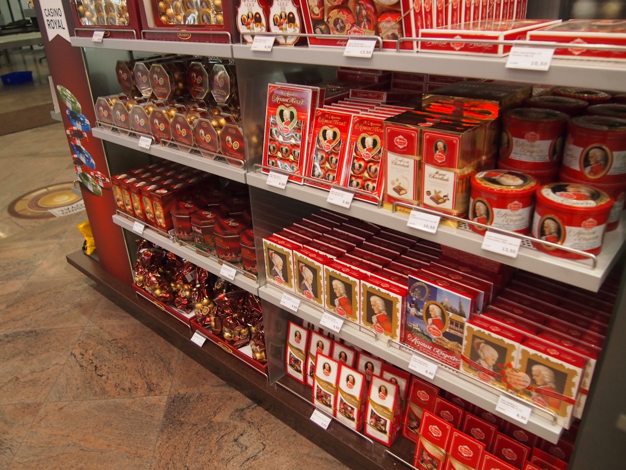 売店は、セキュリティーゲート入って、飛行機に乗る前にあります。 チョコレートなどのお菓子をはじめとする、オーストリア土産は何でも揃っているようです。 ドイツのHARIBOグミも売ってました!