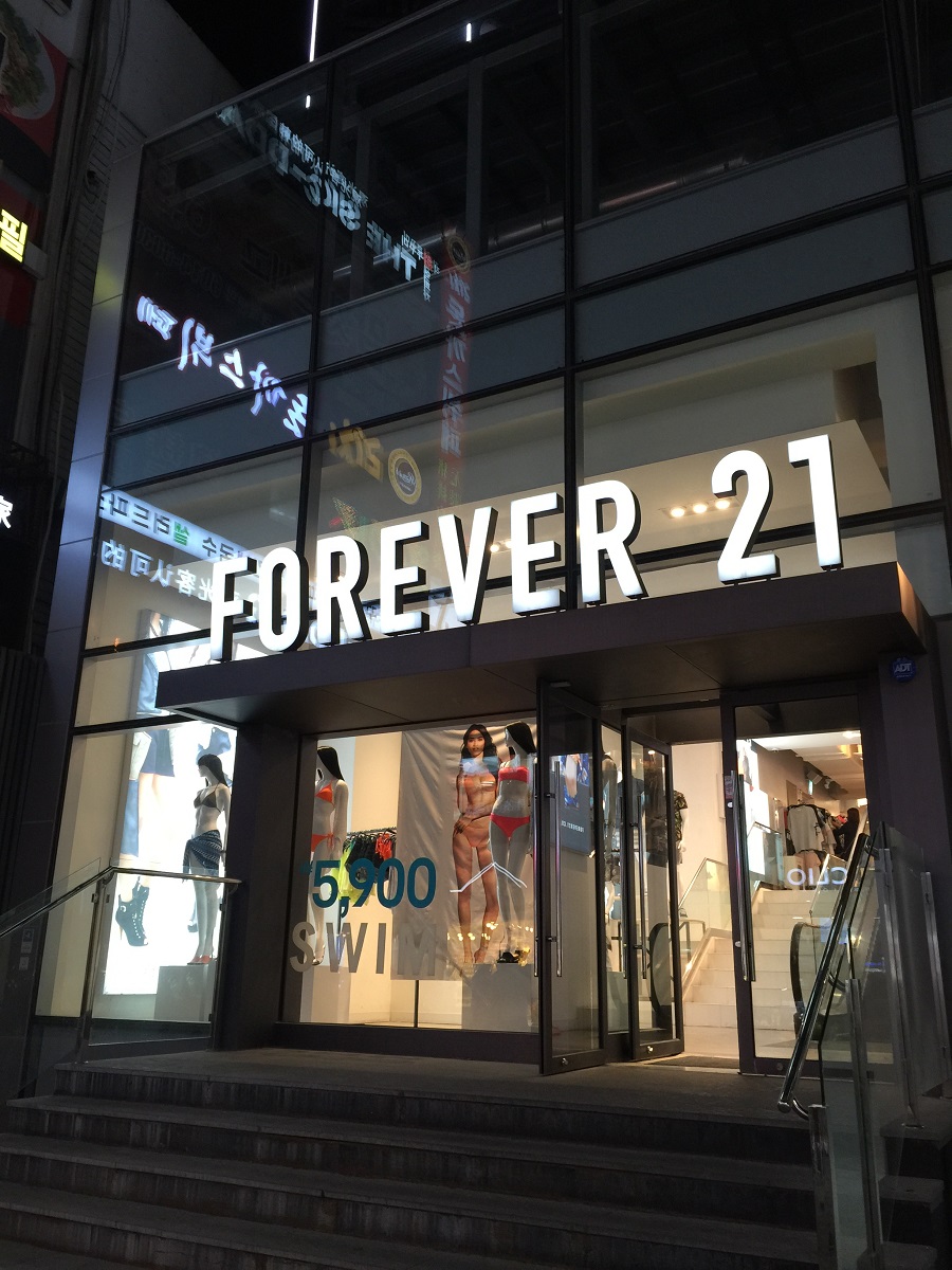 ソウルにも世界的ファッションブランドのフォーエバー21があります。明洞のMプラザというビルのテナントになっています。日本にあるようなお店と同じくらいの規模でラインナップも似たようなセンスだと思うんですが、残念なことに円安のせいで割安感どころか割高なんじゃないかというレベルで買い物の楽しみがまた一つ減ったような感じでした。