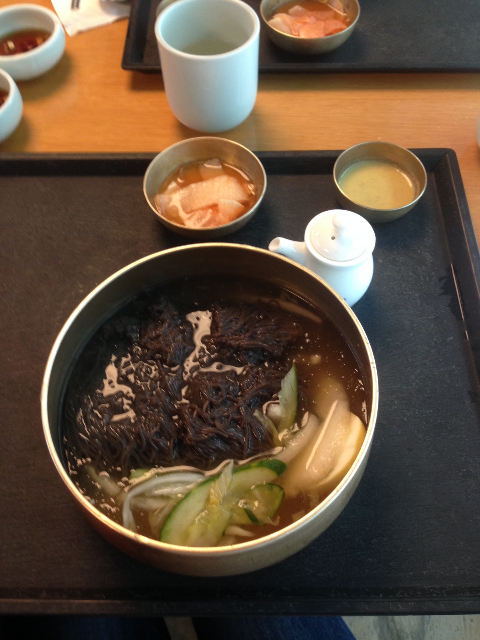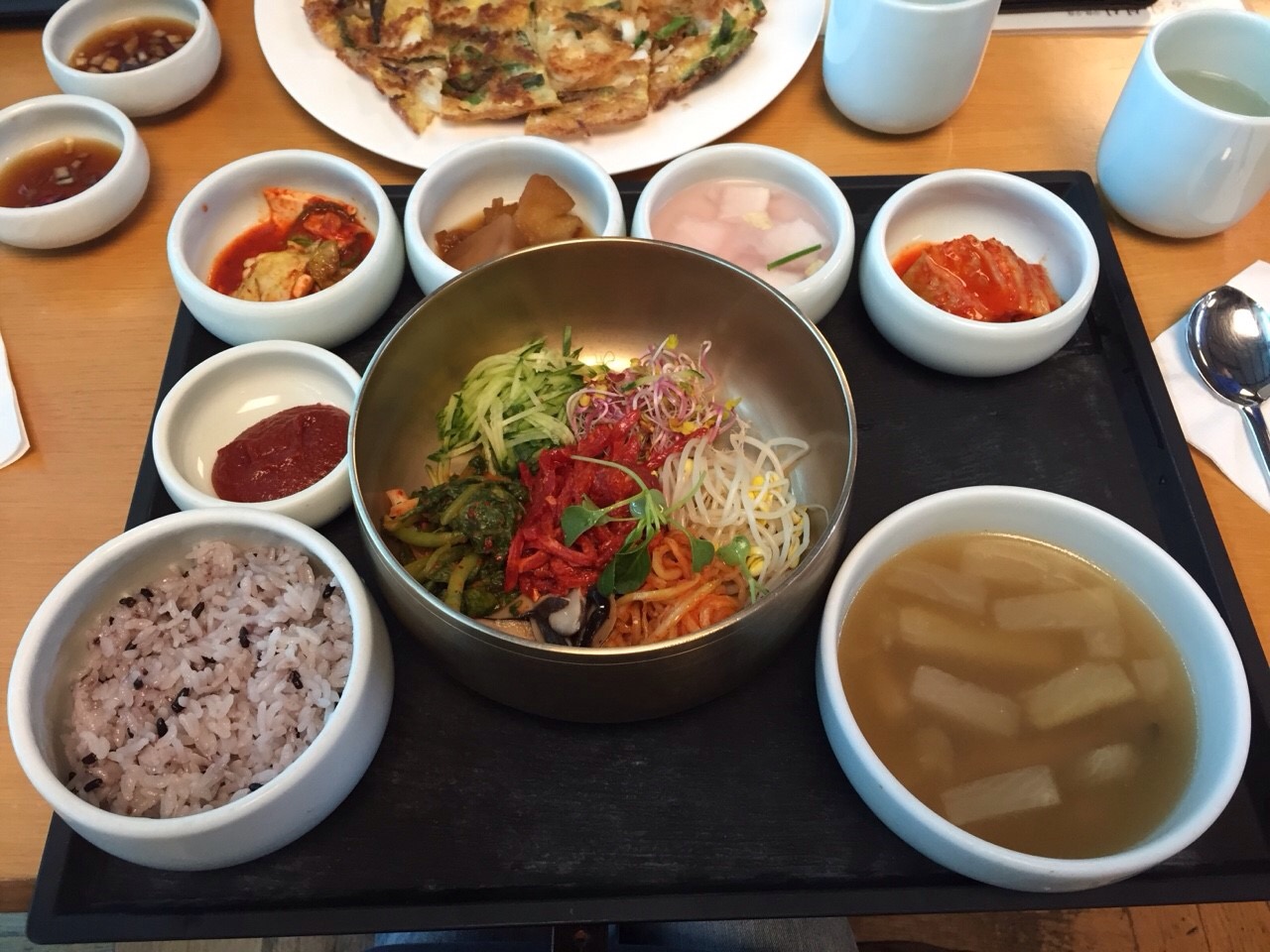 お値段はユッケビビンバ、冷麺×2、ヘムルパジョン(海鮮チジミ)で55000Wくらいでした。