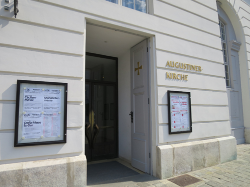 外から教会の建物が見えないので入口がわからず、うろうろしている人を何人か見かけました。注意して探さないと通り過ぎてしまいそうです。また、内側のドアが閉まっていたので中に入れないと勘違いして帰って行く人もいましたが、ドアを開ければ中に入ることができました。教会の中はシンプルです。でも、そのシンプルさがかえって皇帝の結婚式が執り行なわれるにふさわしい高潔さを表しているようで、背筋がピンと伸びる感じがしました。