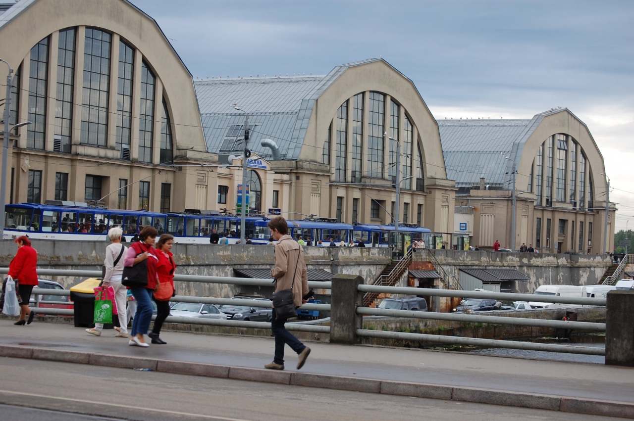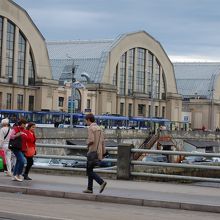 駅の隣、バスターミナルの向かいにある、大きな市場。むかし、飛行船のハンガーだった建物を改良して、今も営んでいるようだ。4つの大金ハンガーはそれぞれ、肉、魚、野菜生活雑貨、日用品などに分かれている。それぞれの店では定価が表示してあり、ほぼ同じ料金。値引きはしないようだ。外にもたくさんのテントがあり、様々なものが売られている。もちろん、土産になるものもたくさんある。旧市街からは歩いて10分。