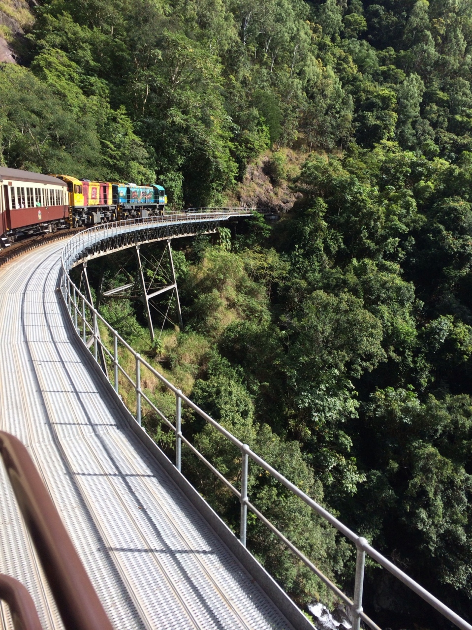 ホースシューベンドでのヘアピンカーブやストーニークリーク滝、バロン滝駅など見所では速度も緩められたり