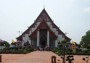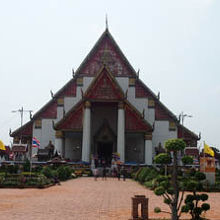 ワット・プラ・シー・サンペットの遺跡群を見た後に訪れるととても真新しい現役の寺院に見えます。建物の中央には黄金に輝く仏像があります。建物内は外に比べやや薄暗いのですがそれでもピカピカに輝いていました。