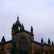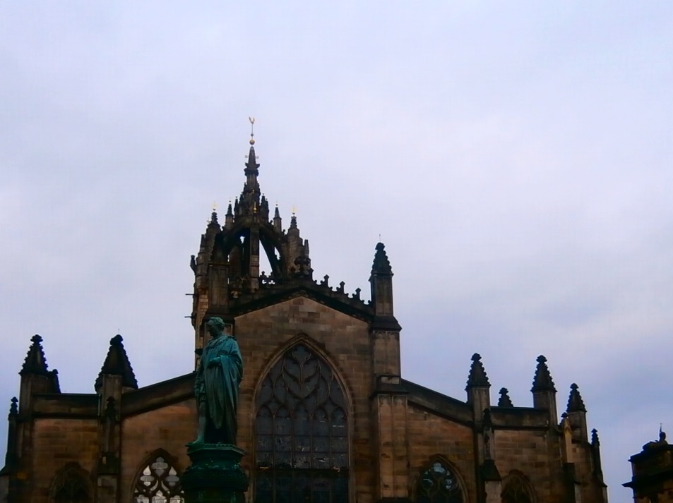 駅からロイヤルマイルのほうに歩きすぐのところにありました。ヨークで見てきた大聖堂から比べると大きさはそんなにですが、エディンバラらしい大聖堂が見られたので満足です。ステンドグラスにはバグパイプをふいている人がいるのだとか。