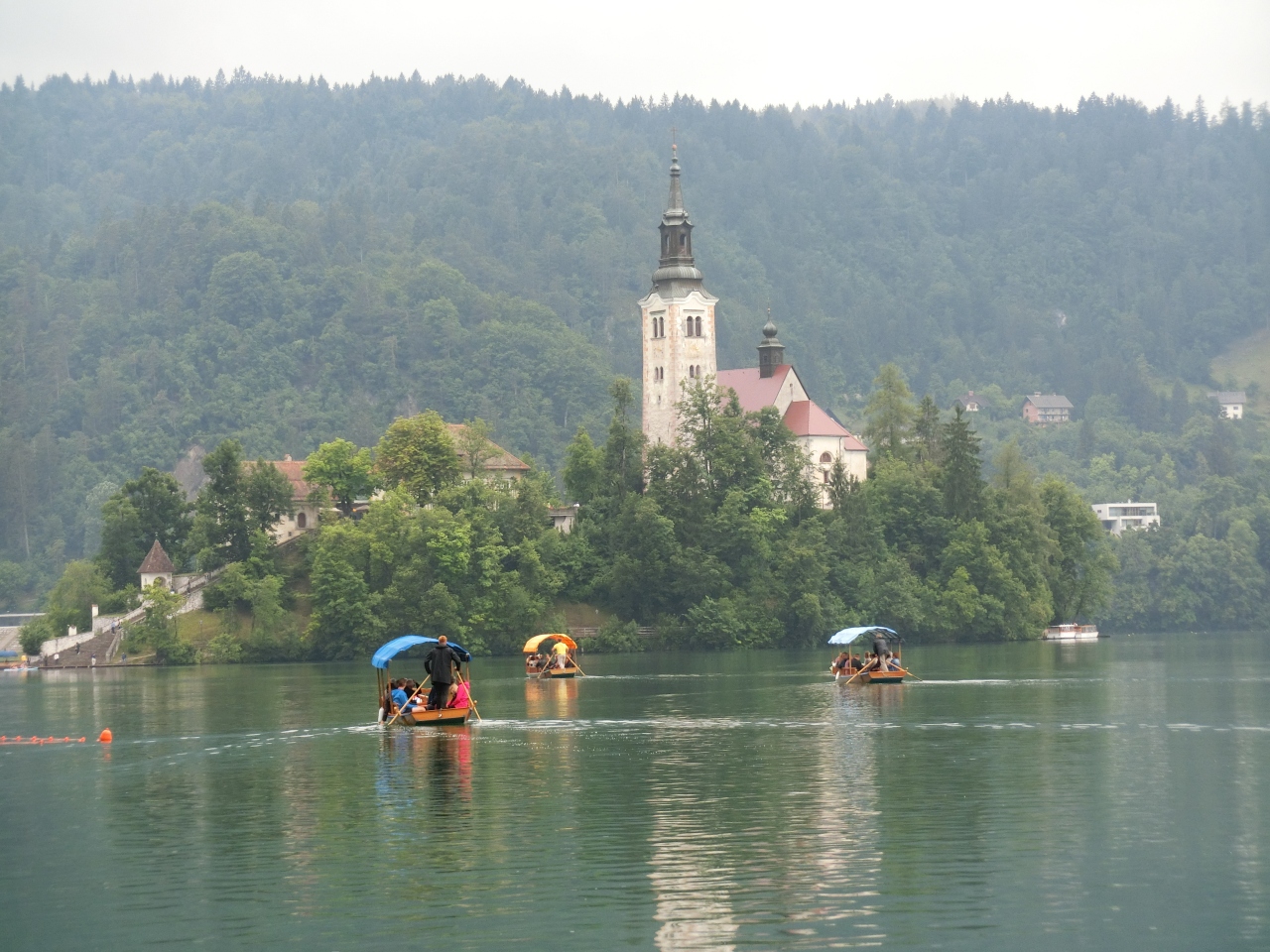 アルプスの麓のため天候が変わりやすく、訪れた時は生憎の雨でした。湖の中ほどには手漕ぎボートで行く聖マリア教会があります。また船着き場の近くには旧チェコスロバキアのチトー大統領の別荘があり、崖の上にはブレッド城が建っていました。