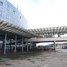 ソフィア中央駅隣に建つガラス張りの2階建てのバスターミナル。