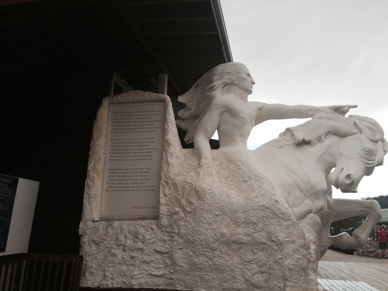 白人に原住民を知ってもらうために政府の援助なしにやっているプロジェクト。いつ完成するか不明です。入場料は22ドル(2015年6月時点)とお高め。更に、博物館を楽しめるものの、現物は遥か遠くから眺める形です(別料金のシャトルバスに乗れば近くまで行けるようでしたが、私の行った夕方にはもう受け付けてませんでした)。