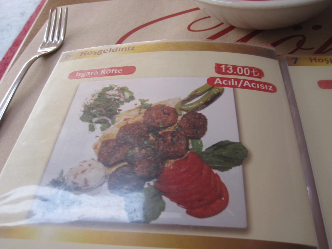 地域名物のイズガラ・キョフテは盛りに合わせて数種のメニューがあります。