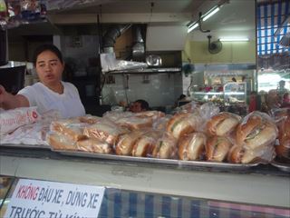 お店は大通り沿いにありわかりやすいですパンだけでなく店内で生春巻きや麺類などを注文してその場で食べる事もできます。メニューを見せてもらいましたがたくさんの種類がありました。お店の定員さんは全くといっていいほど英語は通じませんが指差しで何とかなります。20000ドンのバインミーをテイクアウトしました。中は種類の違うハムがたくさん入っていてとてもおいしいです。フランスパンは日本のとは違い固くなく食べやすいです。