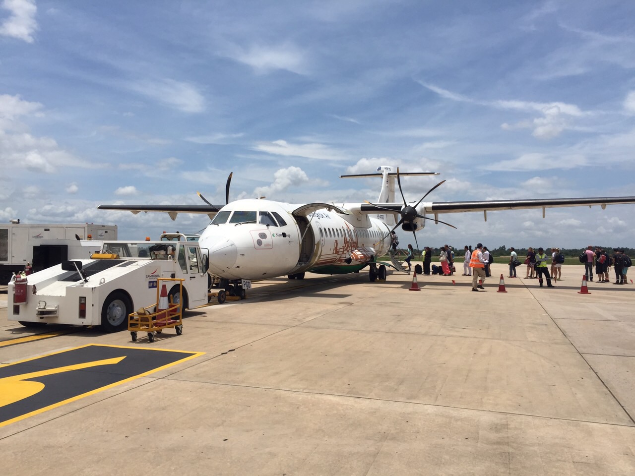 アンコールワットの玄関口、シェムリアップの空港です。少し前までは国内線やわずかな近隣諸国便が発着するだけでしたが、近年は中国や韓国など比較的長距離のフライトも就航するようになりました。客数に施設が追いついていなくて座る場所やトイレを確保するにも一苦労。現在は拡張工事中でうるさいです。