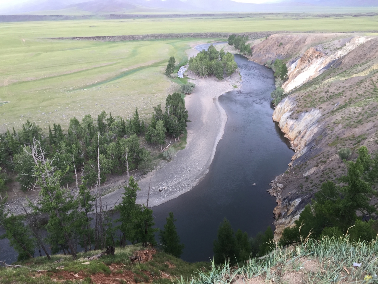 ウランバートルのゲストハウスから4泊5日 中央モンゴルツアーに参加して2日目にやってきました。近くのツーリストキャンプ(ゲル)に泊まり 夕食後、ゲルから馬に乗っててくてくと連れられて30分。