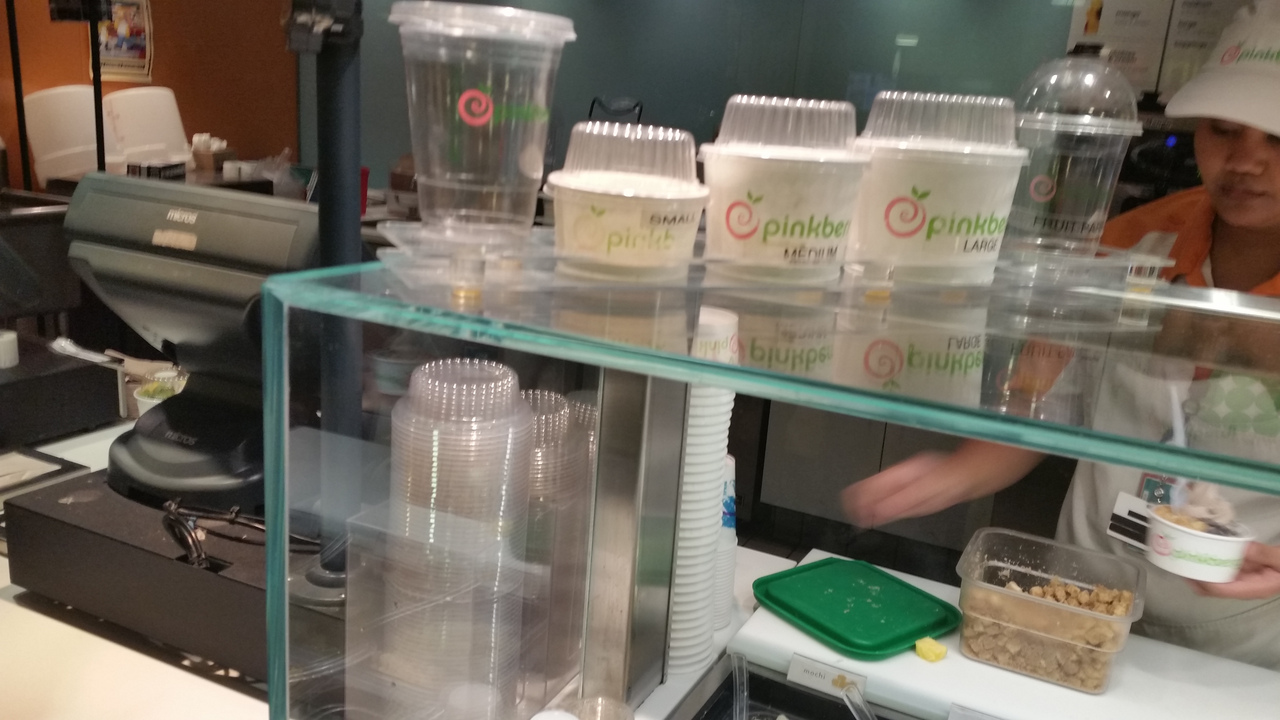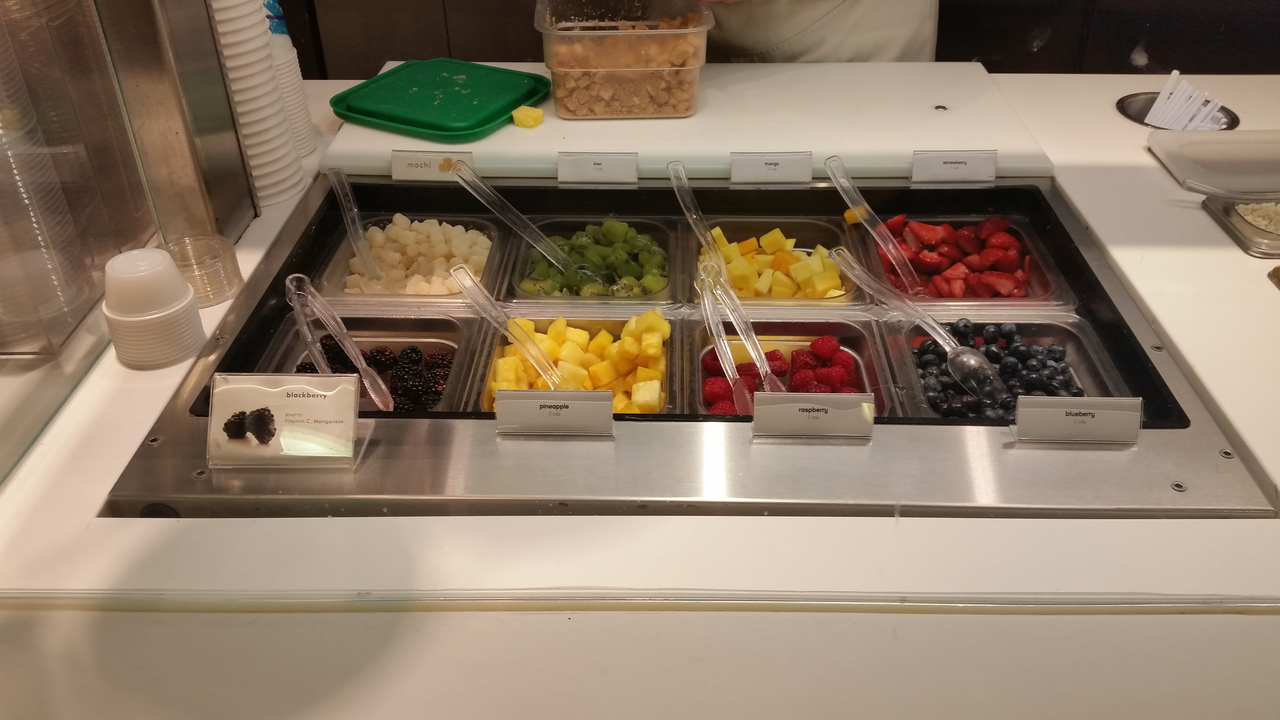 ここはホノルル国際空港の出発エリアにあるお店です♪口コミとかで見ていて、凄く美味しそうだったので、搭乗開始時刻ではありましたが、走ってフードコートまで行き、運良く全然並んでいなくて直ぐに買うことが出来ました♪(^_^)/トッピングも目に付いたのを適当に入れてもらって、また再度搭乗口まで走って、何とか無事食べる事が出来て飛行機にも乗る事が出来ました~(^^;)(;^^)味は他のフローズンヨーグルトとは違い、とにかく濃いヨーグルトを凍らせたのを食べているといった感じの物でした♪(^q^)美味しい♪(^q^)こりゃ出発前に食べる価値ありだなと思いました♪(^_^)/勿論次回も絶対に食べようと思っています♪\(^o^)/