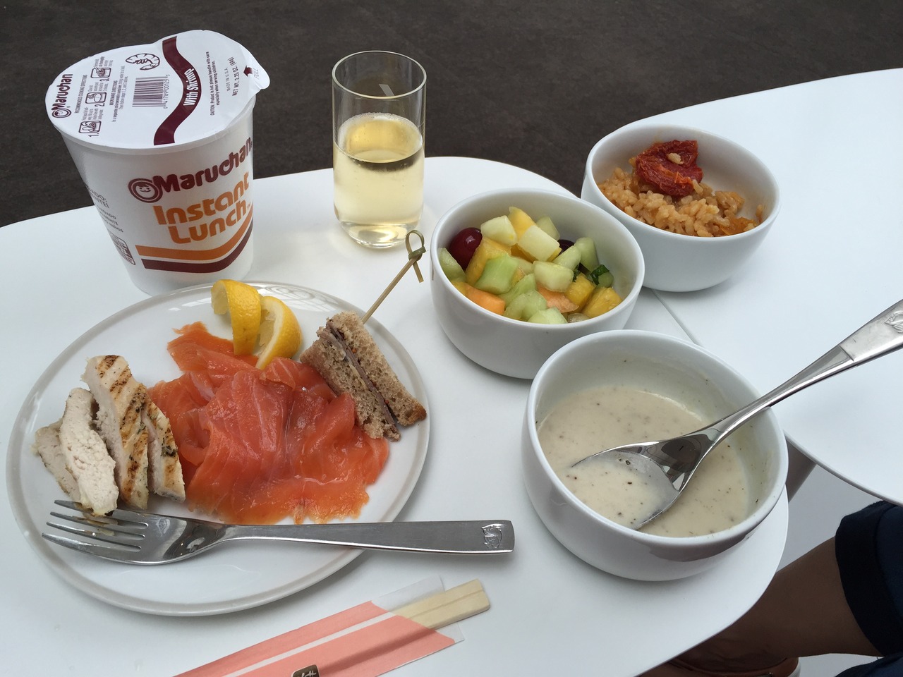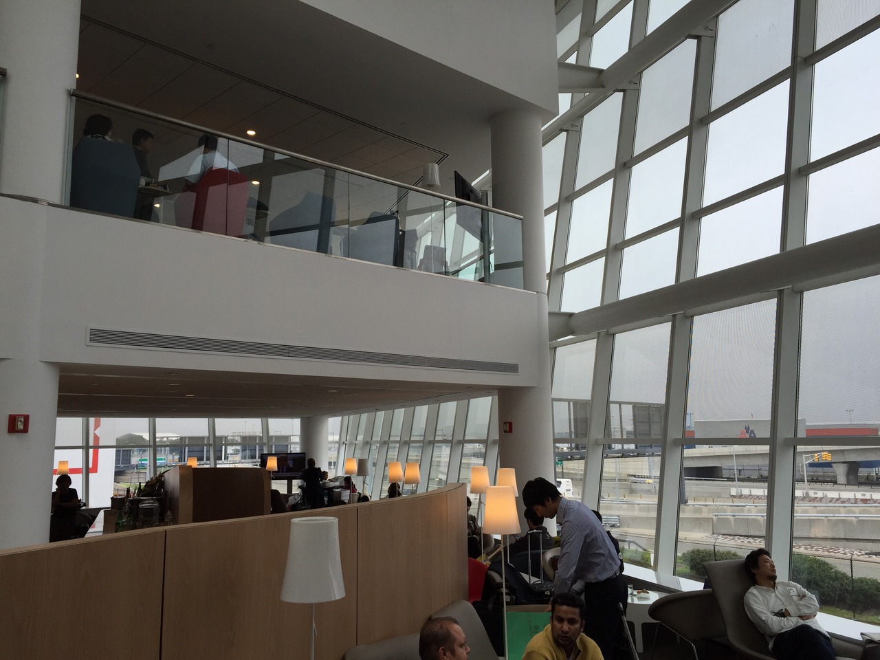 半年ほど前、JFKのさくらラウンジが営業終了して、どうかな?と思いましたが、ワンワールドの提携はないのですが(ワンワールドは8ターミナルのAAを利用?)JALは、エールフランスのラウンジが利用できました。シャンパンは飲めるし、マルちゃんのカップラーメンも置いてあったので満足。フランスらしいスタイリッシュな内装で、日経新聞など日本人向けのサービスも完備されており合格です。残念なのは、オニギリが置いて欲しいですね。