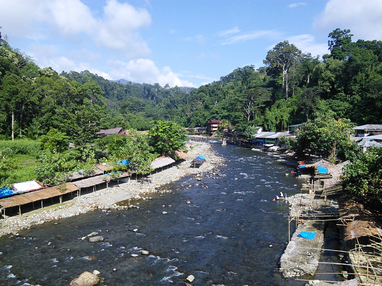 メダンのピナン・バリスバスターミナルから所要約2.5h、Rp25000(かなりボラれますので注意!詳細は「ピナン・バリスバスターミナル」参照)。グヌン・セウレル国立公園に接する小さな村。オランウータンを見れることで有名です。川沿いにホテルやレストラン、土産物屋が並んでいます。外国人観光客も多いですがローカル客も多く、特に終末は日帰り客も含めて結構な賑わいです。オランウータンの餌付けを見るための国立公園入域料は15万ルピア(2014年に値上げ)。ガイド同行が義務付けられており政府主催のミニツアーもありますがホテルや村内にいるプライベートガイドを利用してジャングルトレッキングとオランウータン見学をする人が多いようです。しつこいくらいに勧誘されます。ホテル、ゲストハウスは多数あり1泊Rp50000からあります。静かで自然あふれるところですがなにせ観光地なのでそのおつもりで…。