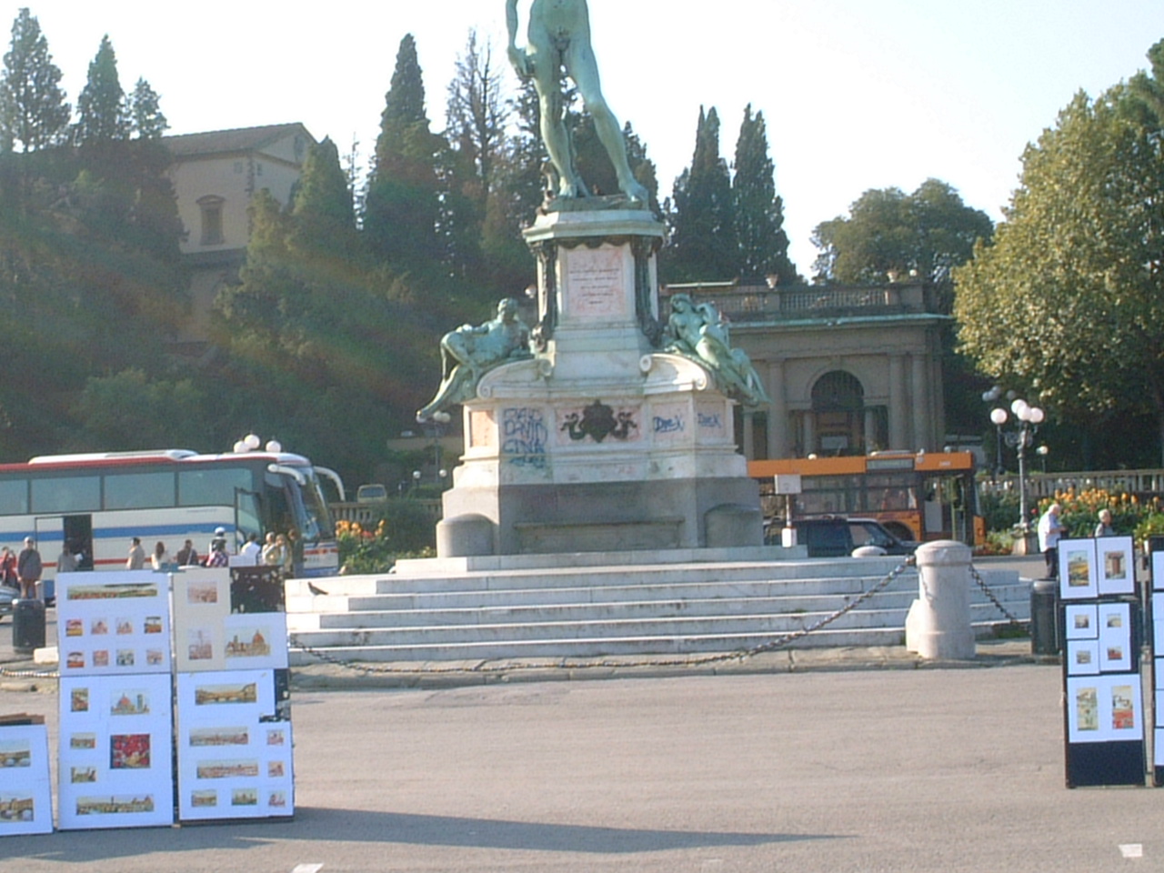 フィレンツェの市街地から歩くのは大変なので、バスかタクシーで行きますが、丘の上にあるダビデ像が中心の広場でフィレンツェ市街地が一望にできて、最高の眺めです。よくフィレンツェの展望写真はここから撮られたものです。