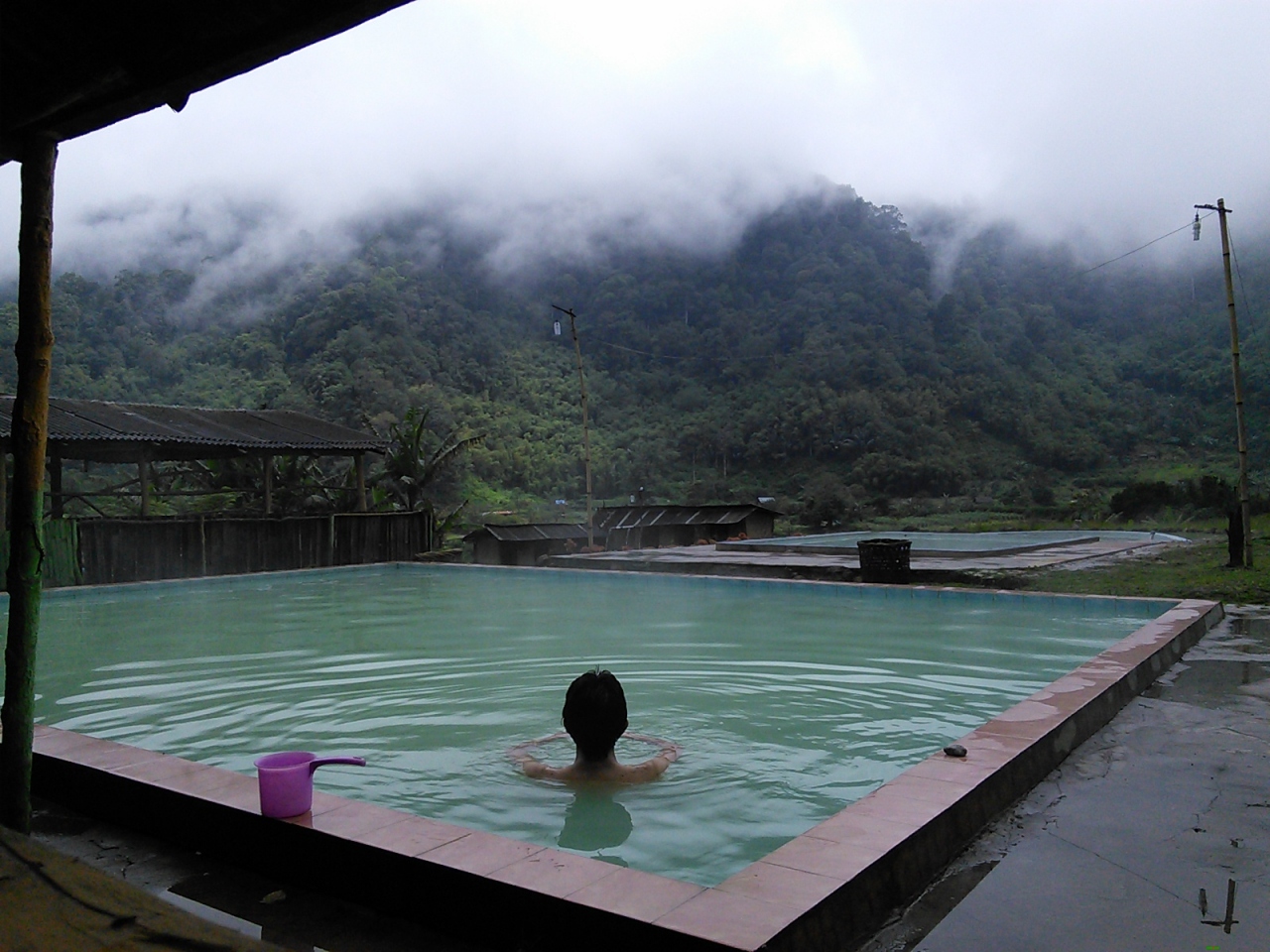 帰りは火口からRaja Berneh村へ直接下る道もあるようですが急でジャングルなのでガイドなしでは行かないように言われました。行方不明者も出ているようです。なので来た道を引き返します。小屋のある三差路からRaja Berneh村までは50分ほど。温泉の利用できる宿や食堂が何軒かあります。私は一番最初にあった村外れの「MELIALA」という食堂の温泉に入りました(Rp5000)。村の中心にはもっと設備の整ったところもありますが料金もRp10000で地元観光客もいて趣はあまりないと思います。野趣味あふれる露天風呂を味わいたいならMELIALAがおすすめです。村からブラスタギへは15Km、ミニバスが出ています(Rp7000)が人数が集まらないと出発しないので少々やっかいです。最終は16:00頃だと言われました。