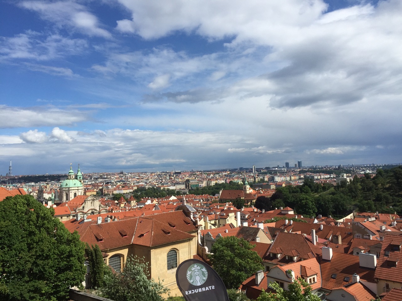 プラハ城正面入り口を出てすぐの場所にあります。屋上のテラスからはプラハの街並みがよく見えます。スターバックス店の横の坂から多くの観光客が写真を撮っている程の絶好の写真スポットです。現在正面入り口は全面改装されており残念ながら門を見ることができないので、かわりといってはなんですがこちらのお店でプラハの街並みを楽しむのもいいかもしれませんね。