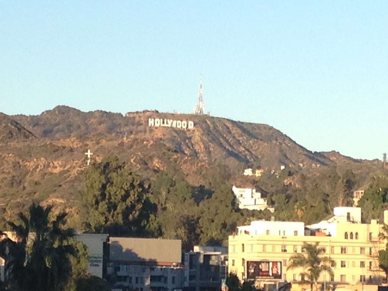 Hollywood&Highlandというショッピングモールのエリア内からハリウッドサインを遠くに眺められる場所があり、人だかりができてました。