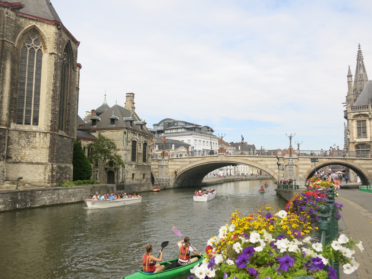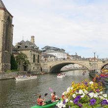 ゲント駅方面から運河沿いを歩いてくると、この橋にぶつかります。この橋を越えたあたりから運河沿いに中世のギルドの家々が軒を連ね、一気に中世のノスタルジックな街並みに変わります。天気が良い日はビールを飲みながら、運河沿いをぶらぶらするのも楽しい。
