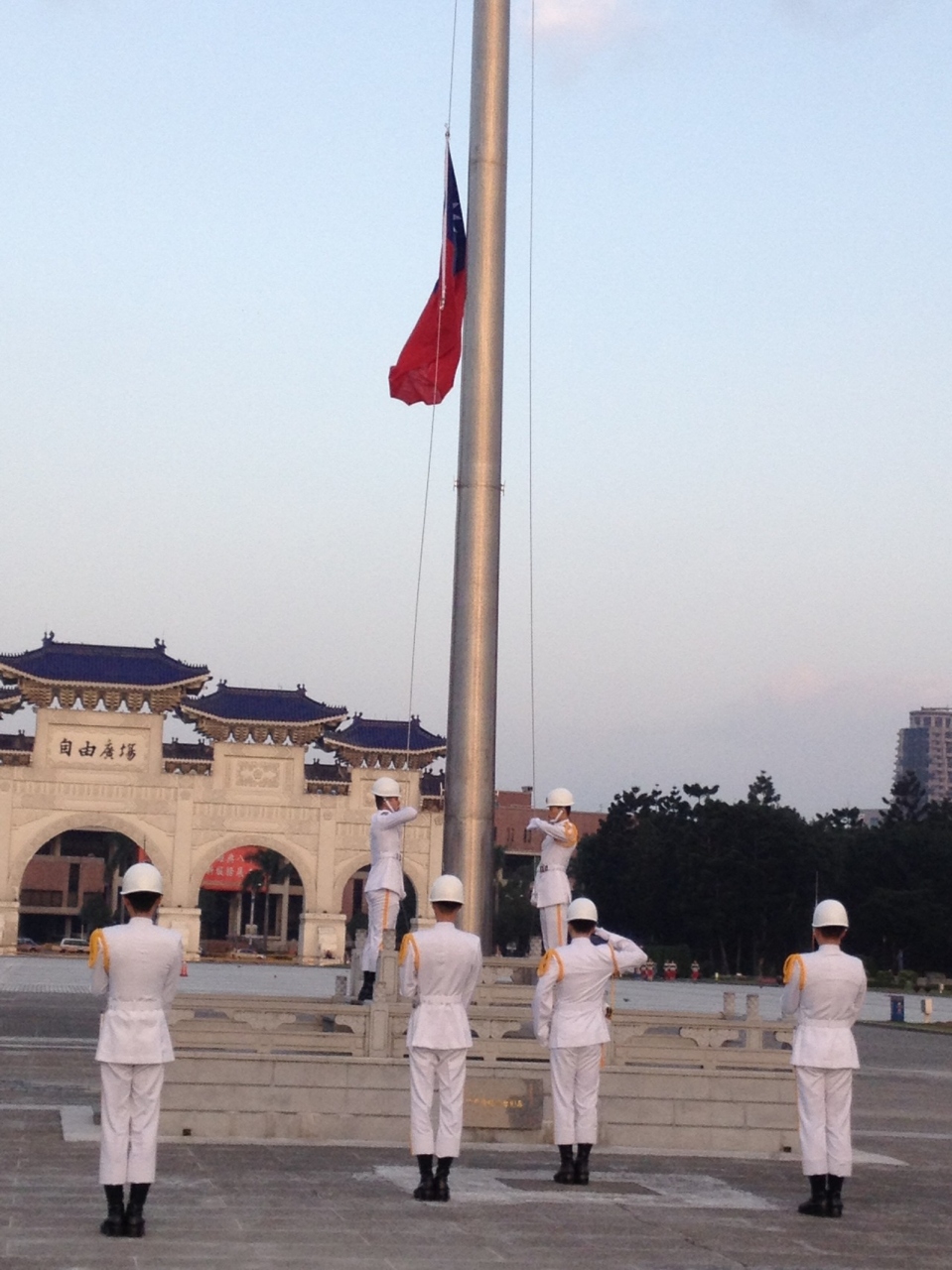 中が広すぎて最初どこを探せばいいのかわからず、焦っていたら、国旗掲揚の式が広場で始まりました。