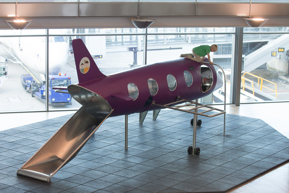 国際線で到着したところにデューティフリーがありますので、お酒を買いたい場合は是非ココで買いましょう。ノルウェーではワインも簡単には手にはいらないかもしれません。少なくとも空港内でお酒が売っているのはこのデューティフリーだけです。空港ターミナル内は、セブン-イレブンをはじめとしたコンピニやcafeなど充実しています。ただし、ノルウェーは物価が高いので、水一本でもそれなりの値段と覚悟が必要です。子供の遊び場の飛行機の滑り台が可愛かった。