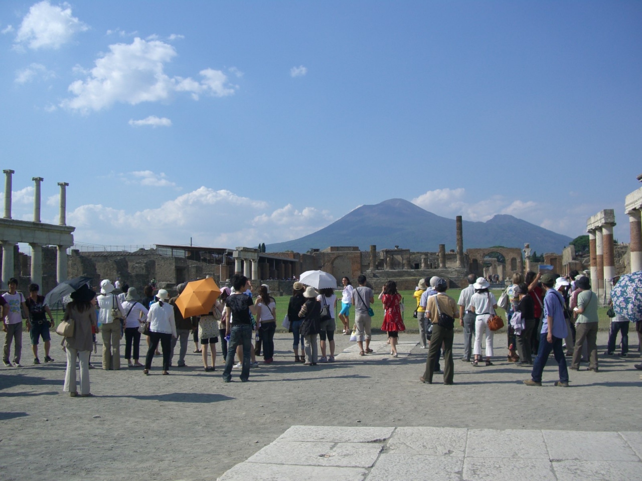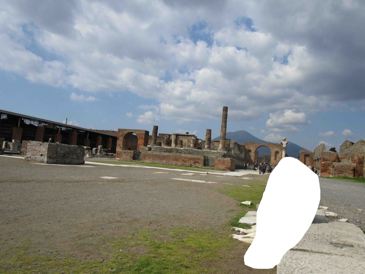 重厚な柱や土台が当時をしのばせます。神殿の向こうにヴェスビオ山がきれいに見えました。