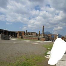 ポンペイ遺跡入り口のメインストリートを進むと、左側に広場があります。その広場に向って正面にかこのジュピター神殿があります。