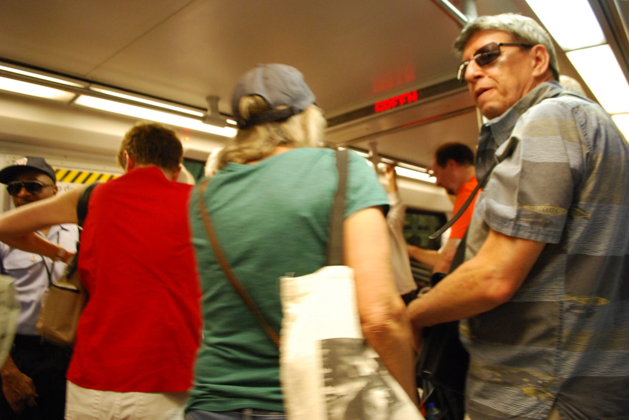 宿泊が、ロナルド・レーガンナショナル空港に近いクリスタリシテイdしたので、市内には毎日地下鉄を利用しました。郊外には、治安が悪いところがあると聞いていましたので、用心はしていましたが、比較的市内は安全なように思いました。開いている席があれば座って、持っているものをガードすることにこしたことはないと思います。一週間要のカードを購入しましたので、最初だけ時間がかかりましたが、後は、切符売り場で待つこともなく快適でした。市内の移動ならおそらく500メートル四方に一駅ある漢字で大体が5-10分歩くだけで目的地に着くことができました。一押しの交通手段です。