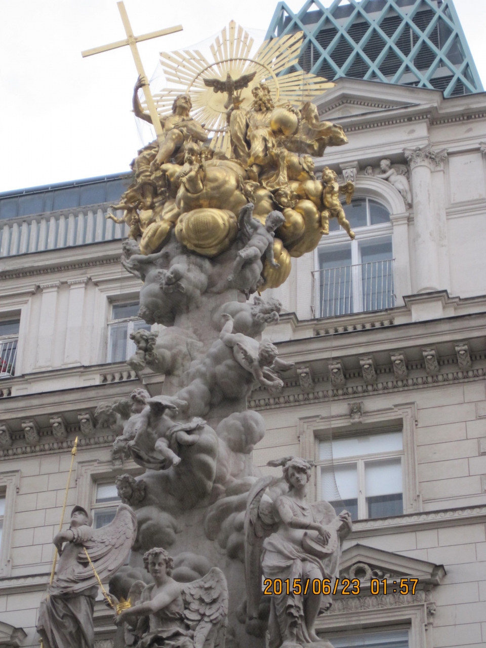 シュテファンプラッツ駅からすぐのところに位置し、周囲は沢山のお店で賑わっている広場に建ちます。ペストの終焉を記念して設置されたといわれており、大きな大理石の彫刻を見ることができます。アクセスしやすい位置にあるので、ショッピングのついでに足を運んでみるといいかもしれません。