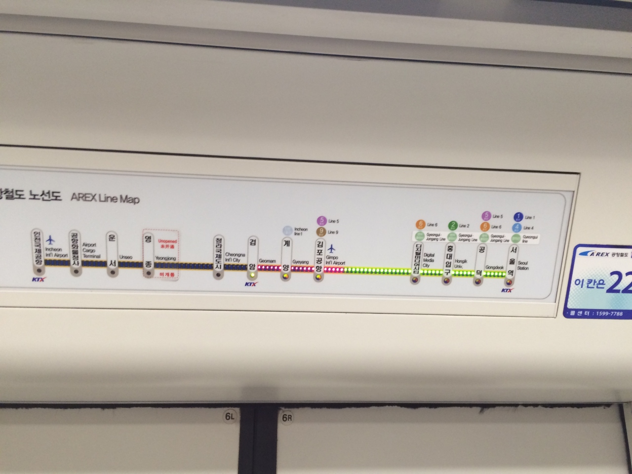 金浦空港からA’REXでソウル中心部へ行きました。空港から駅までは途中動く歩道もありますが、結構歩きました。地下鉄の駅の手前にあるインフォメーション・カウンターでT-moneyの購入と払い戻しができます。