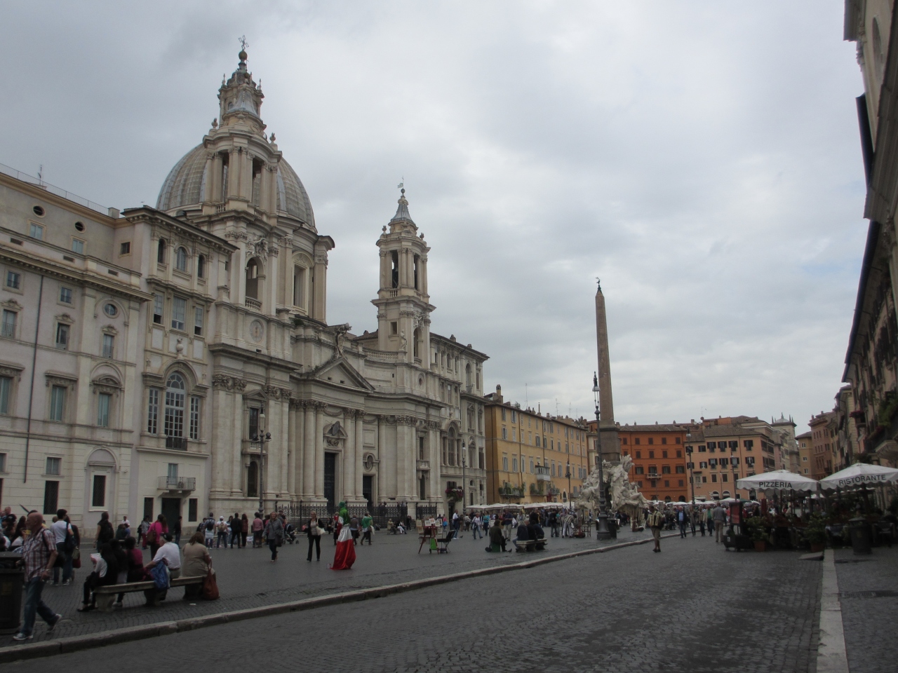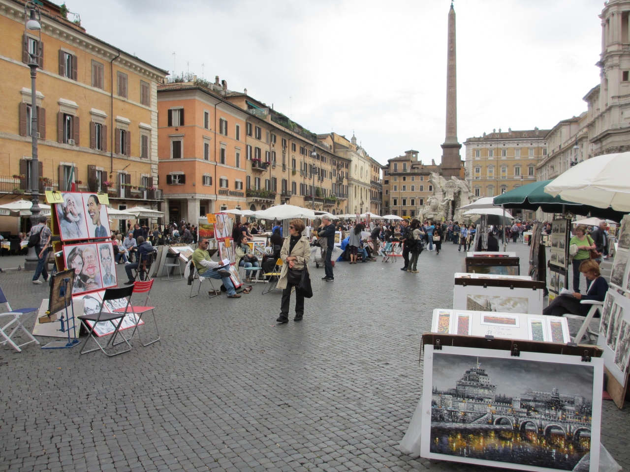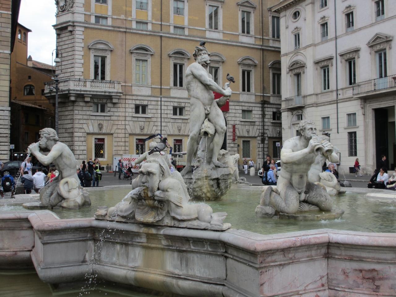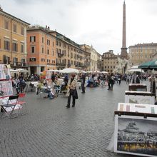 トレビの泉から徒歩で15分ほどの所にある、中世のたたずまいが色濃く残る広場で、ローマの観光スポットの一つになっています。広場周辺には雰囲気の良いカフェやレストランが多数あり、広場内には絵画や土産物を売る人たちがいます。さらに広場内にある彫刻が刻まれた3つの噴水は、芸術のローマの感じさせる作品です。