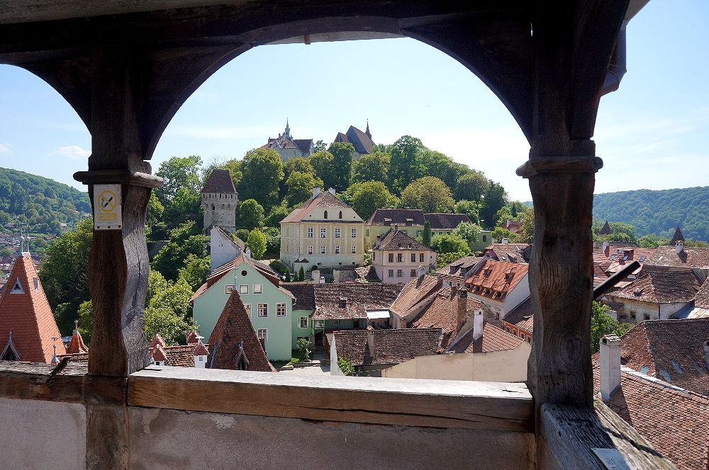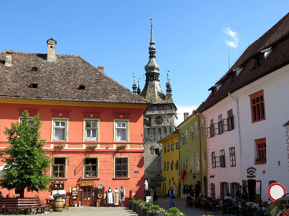 シギショアラはルーマニアで一番人気があるといわれる小さな町。小高い丘の上に旧市街があり、世界遺産にもなっています。2015年の5月下旬にレンタカーでこの町を訪れ、旧市街のすぐ下のホテルに泊まりました。旧市街の散策は1時間もあれば十分できますが、中でも時計塔からの眺めはすばらしいので、是非時計塔の上に上がることをお勧めします(入場料14レイ)。旧市街から長い屋根つきの階段を登ると、山上教会まで行くことができますが、ここはやや期待外れ。教会からの旧市街の眺望も、木々が邪魔をして期待したほどではありませんでした。夜はライトアップもあり、暗闇に浮かぶ時計塔は絵になる光景でした。昼間の旧市街散策はもちろんですが、夜の散策も見ごたえ十分でお勧めです。