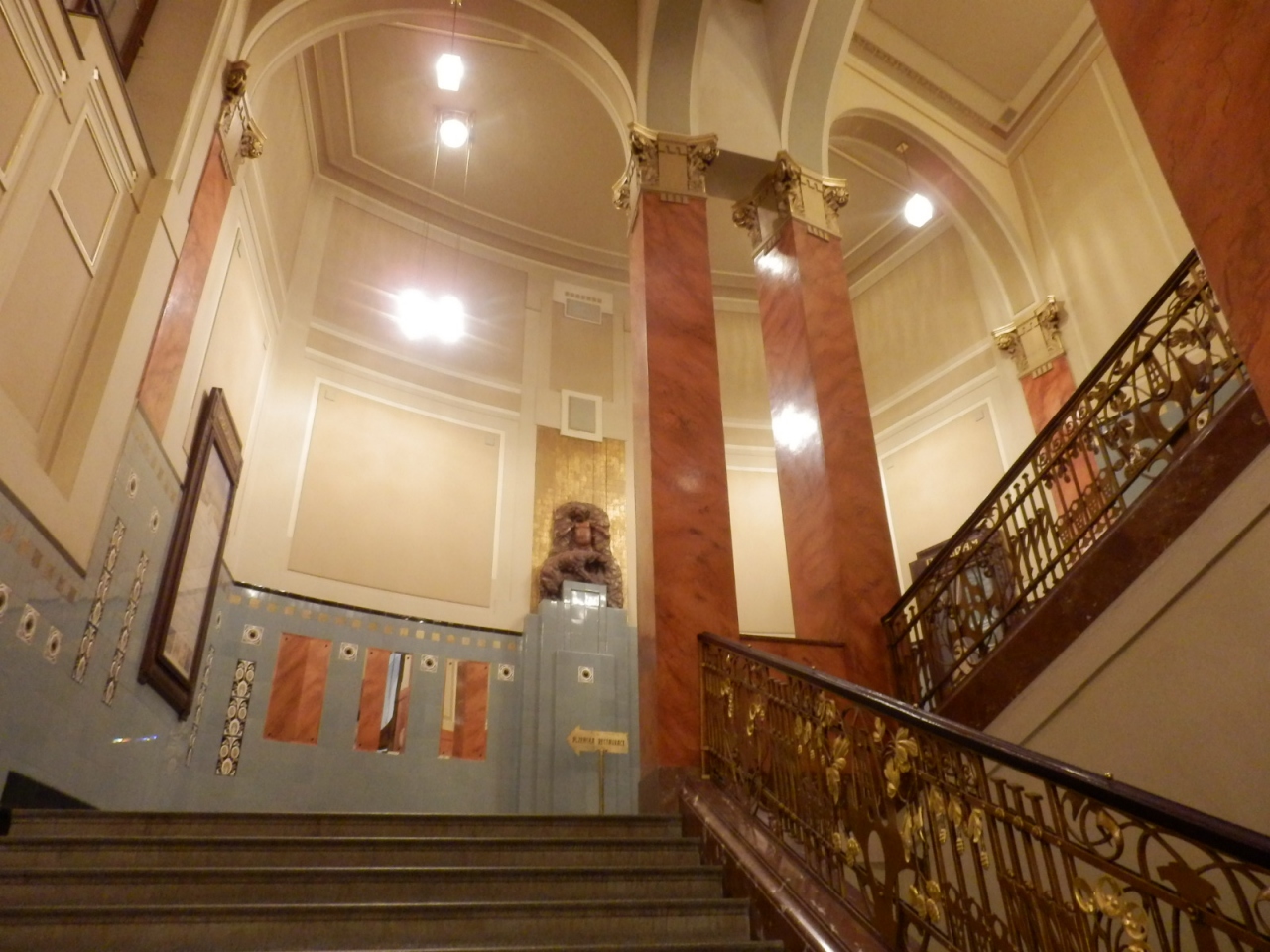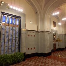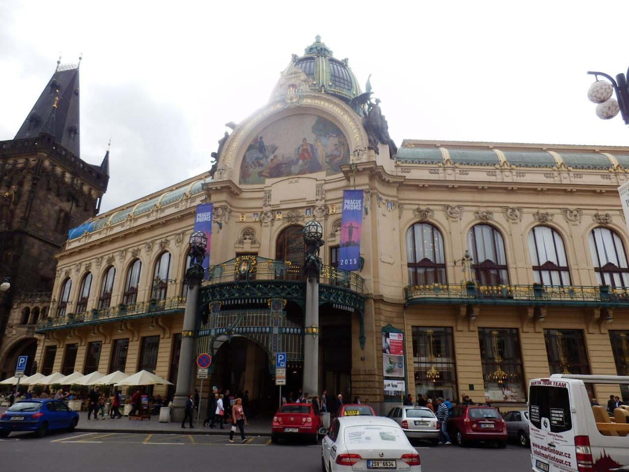 アール・ヌーヴォー様式の美しい建物です。1階はテラス席のあるレストランになっていましたが、いつ訪れても混み合っていました。入口から建物の中に入ると、すぐに切符売場があり、スメタナホー ルで上演されるステージのポスターも貼ってありました。レトロな雰囲気の階段を下ると、地下には広いビアホールがありました。