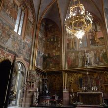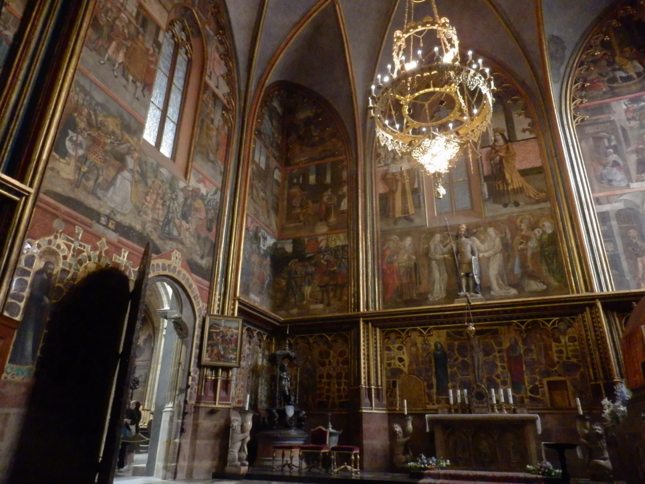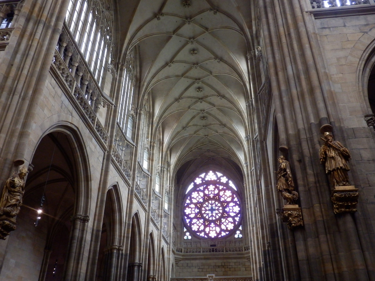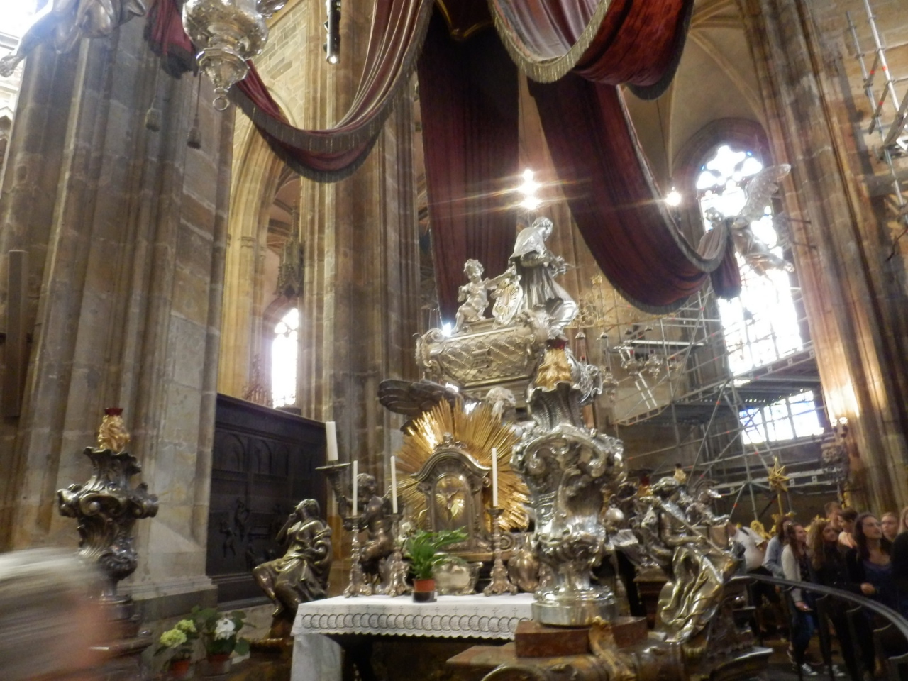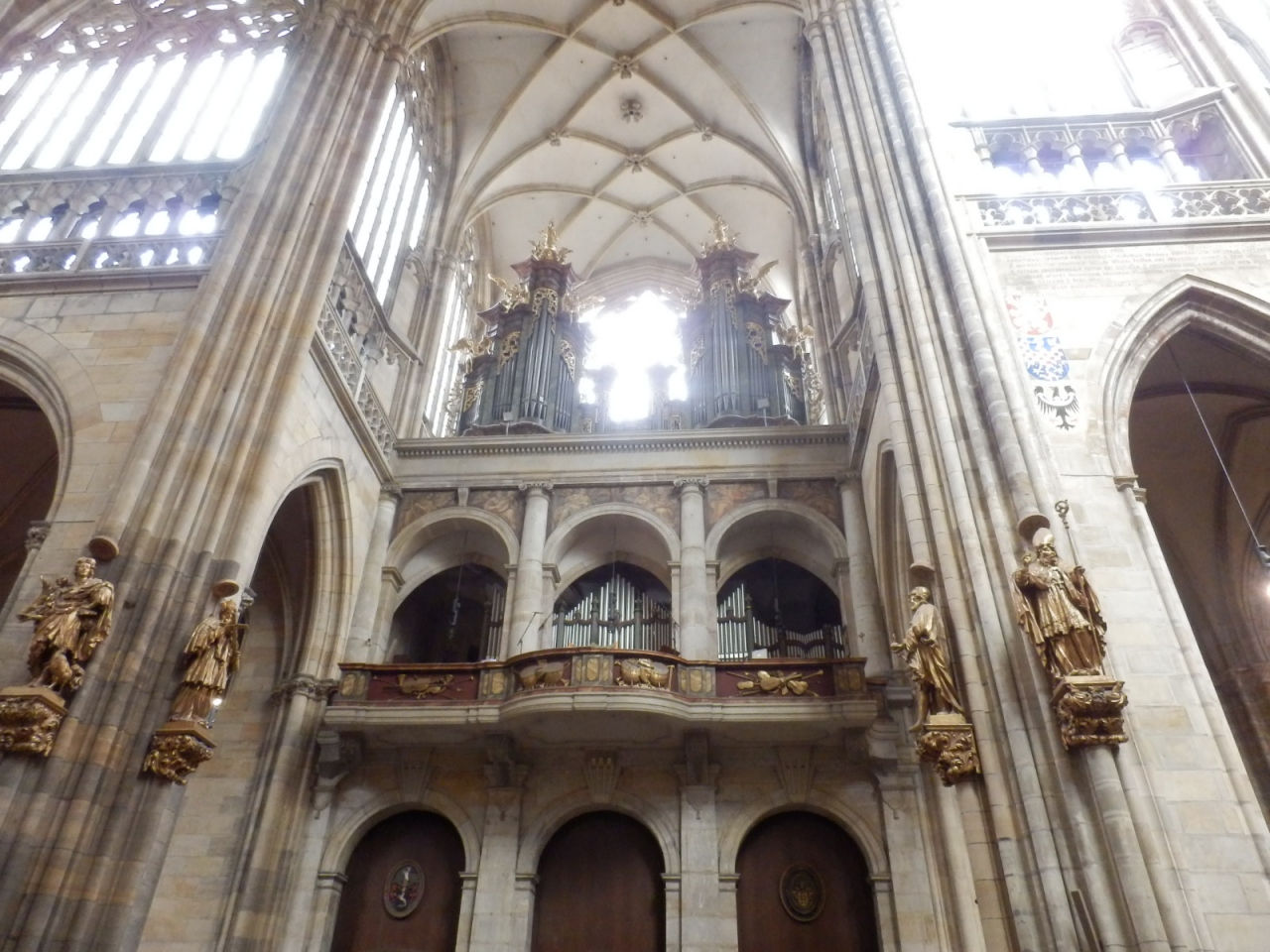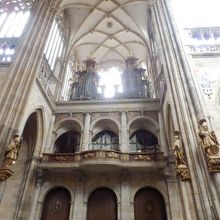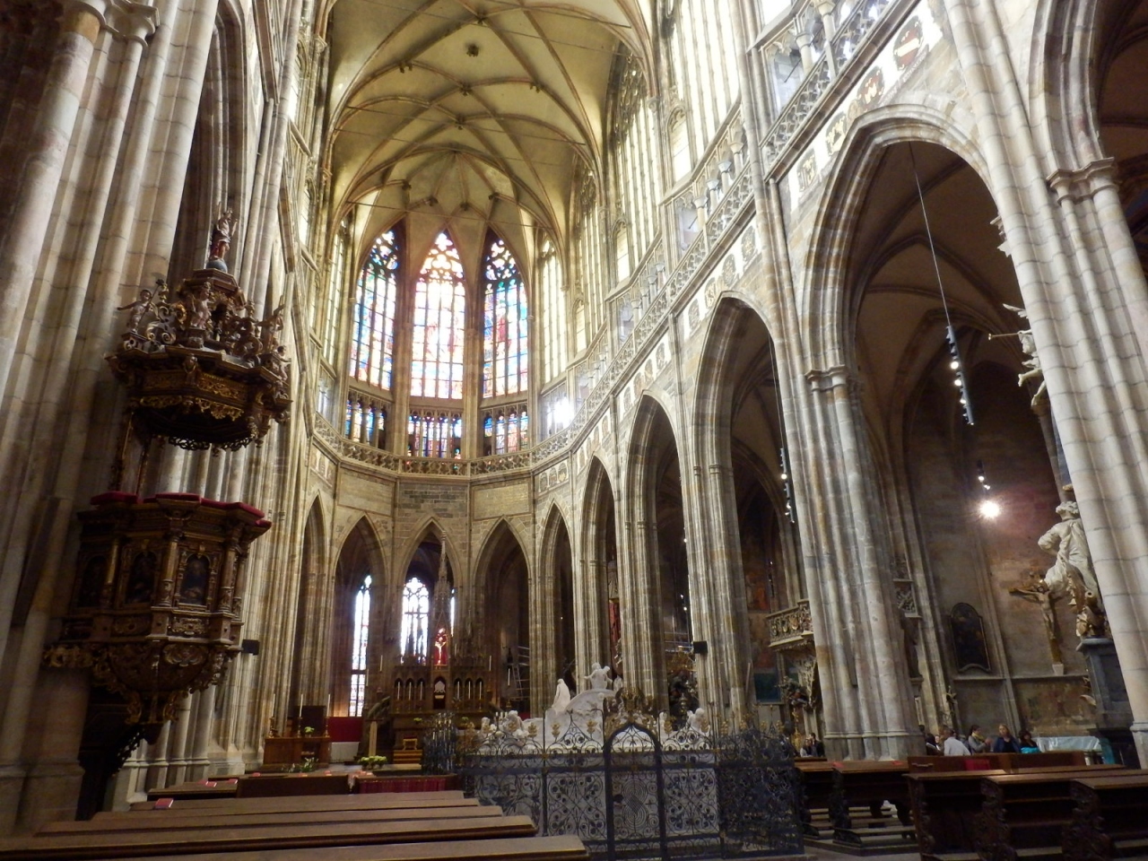 プラハ城の中で一番の観光名所だと思います。午前の早い時間帯に訪れましたが、入口は行列が出来ていました。チケット確認の改札は入口の奥にあるため、チケットがなくても中には入れます。改札のすぐ横が有名なミュシャのステンドグラスですが、他のステンドグラスと趣きが異なっていて、少し違和感を覚えました。混雑していて、大聖堂を一周するのは時間が掛かりました。