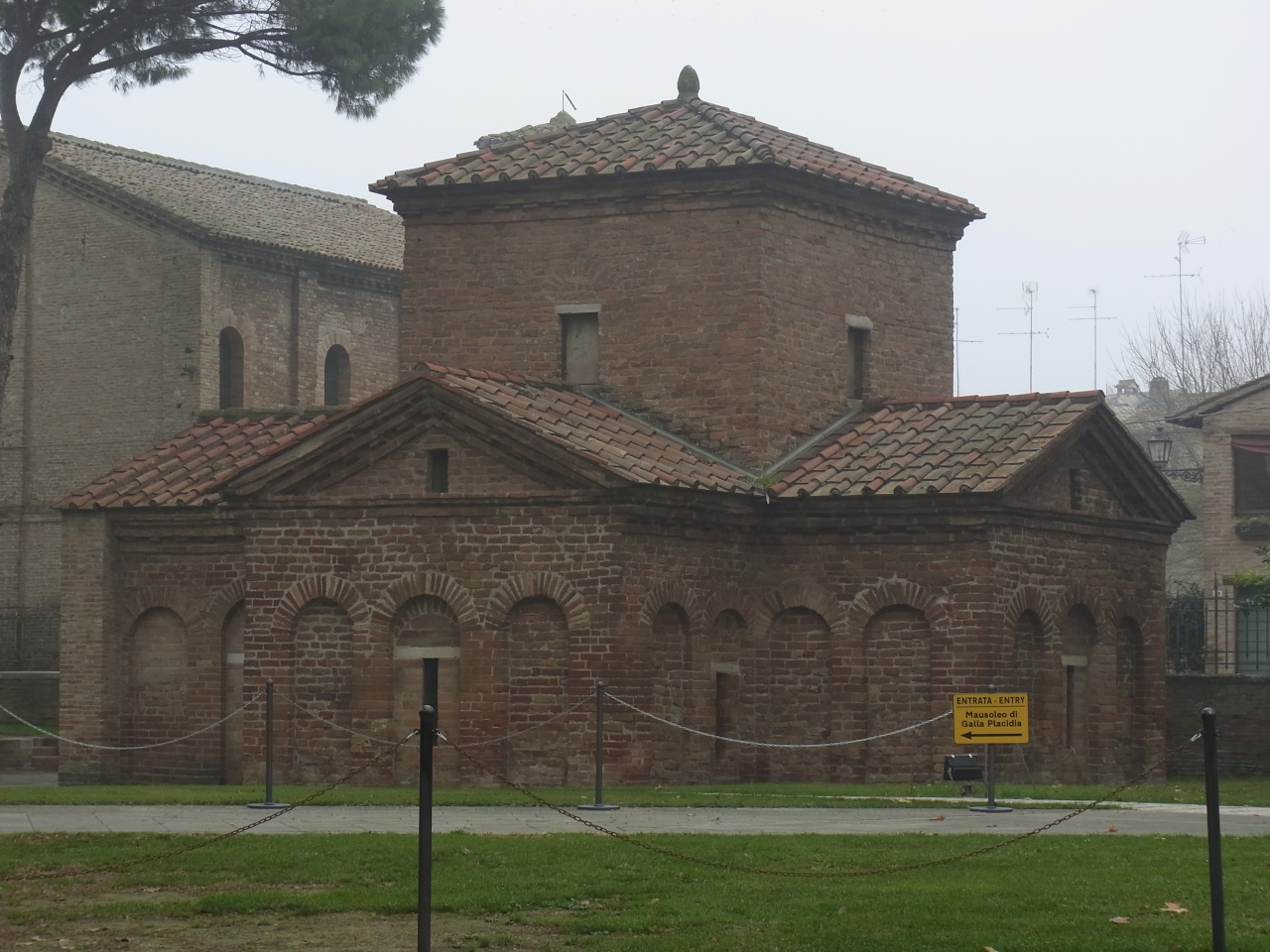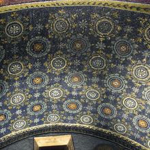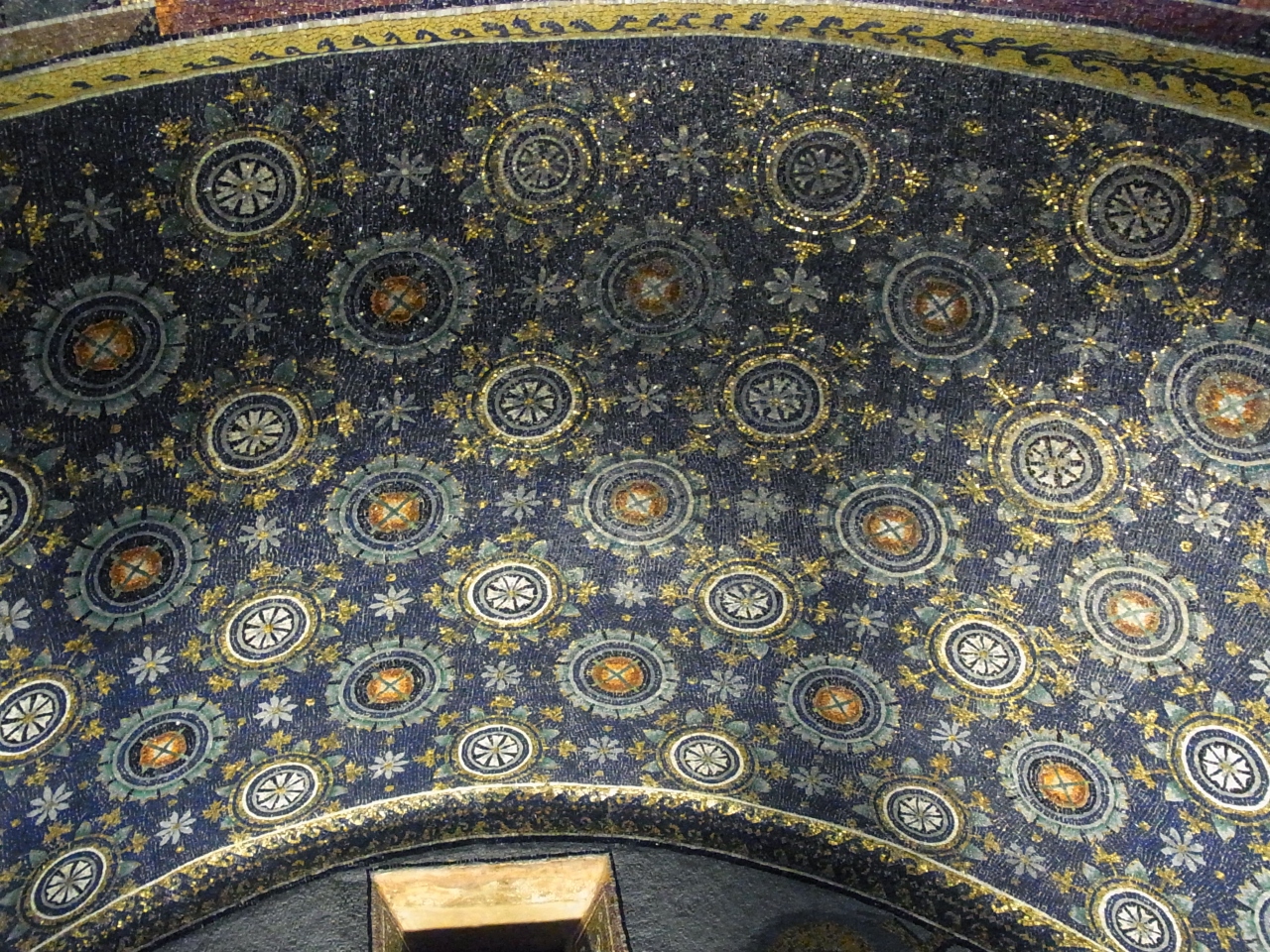 サン・ヴィターレ教会の敷地内にガッラ・プラチーディアの廟があります。サン・ヴィターレ教会よりも早く、5世紀半ばに建てられました。外観は質素ですが中のモザイクは一級品です。満天の星空を思わせる深い青色に金色の組み合わせや幾何学模様、「よき羊飼いの図」等言葉を失う素晴らしさです。中は少し狭く暗めだけれどフラッシュ禁止で撮影は可能です。