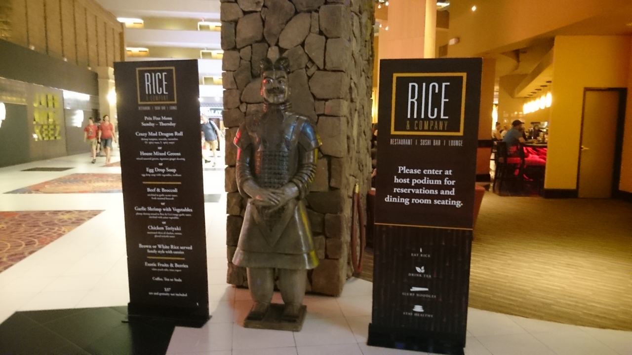 ラスベガス ルクソールの2階にある日本食中心のアジアンレストラン。名前の通り、お米を使った料理に力をいれているようて、カリフォルニアロールやスパイシーツナと言ったアメリカンスシから本格的な寿司もある。このほか、刺身、照り焼きチキン、シンガポールヌードルなどもある。アメリカで寿司を食べると感じるのが、お米がやたら固い(日本人経営のお店を除く)。これがアメリカの寿司と思えば妥協できると思う。10~20ドルくらいはするので物価の高いラスベガス価格。日本食に恋しくなったら、という感じ