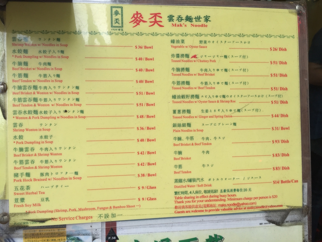 香港名物の雲呑麺が食べたくて、有名な当店を訪問しました。