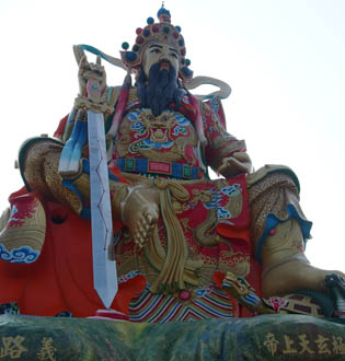高雄の観光スポット蓮池潭にある北極玄天上帝像。橋を渡りお参り?に来る人々に鋭く睨みを効かせております。中にはちょっとした展示物もありますがあまり広くはありません。意外と若いカップルもいますがデートスポットとしては微妙ですね。