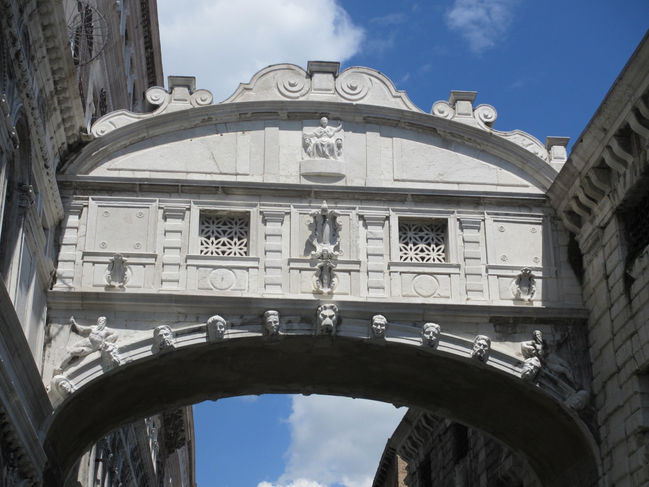 べネシアの水路の上に架かる大理石でできた橋です。ドゥカーレ宮殿とかつての牢獄を結んでいます。橋には覆いがかかり、小さな窓が付いています。犯罪を犯した者が、投獄される前にこの橋を渡り、ベネチアの美しい景色を見る最後の機会に、ため息をついたことからこの名がついたとのことです。今は観光スポットとして、橋を渡ったり、ゴンドラから見たりすることもできます。