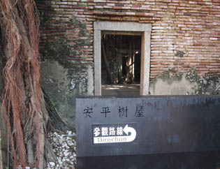 平坦な芝生の敷地の中にそこだけ残された樹木の幹や根に浸食された古屋が安平樹屋です。屋根もほとんど無くなり、壁面も所々崩れ樹木によって輪郭だけが残っています。階段や回廊も設けられていて上からもながめられるようになっています。