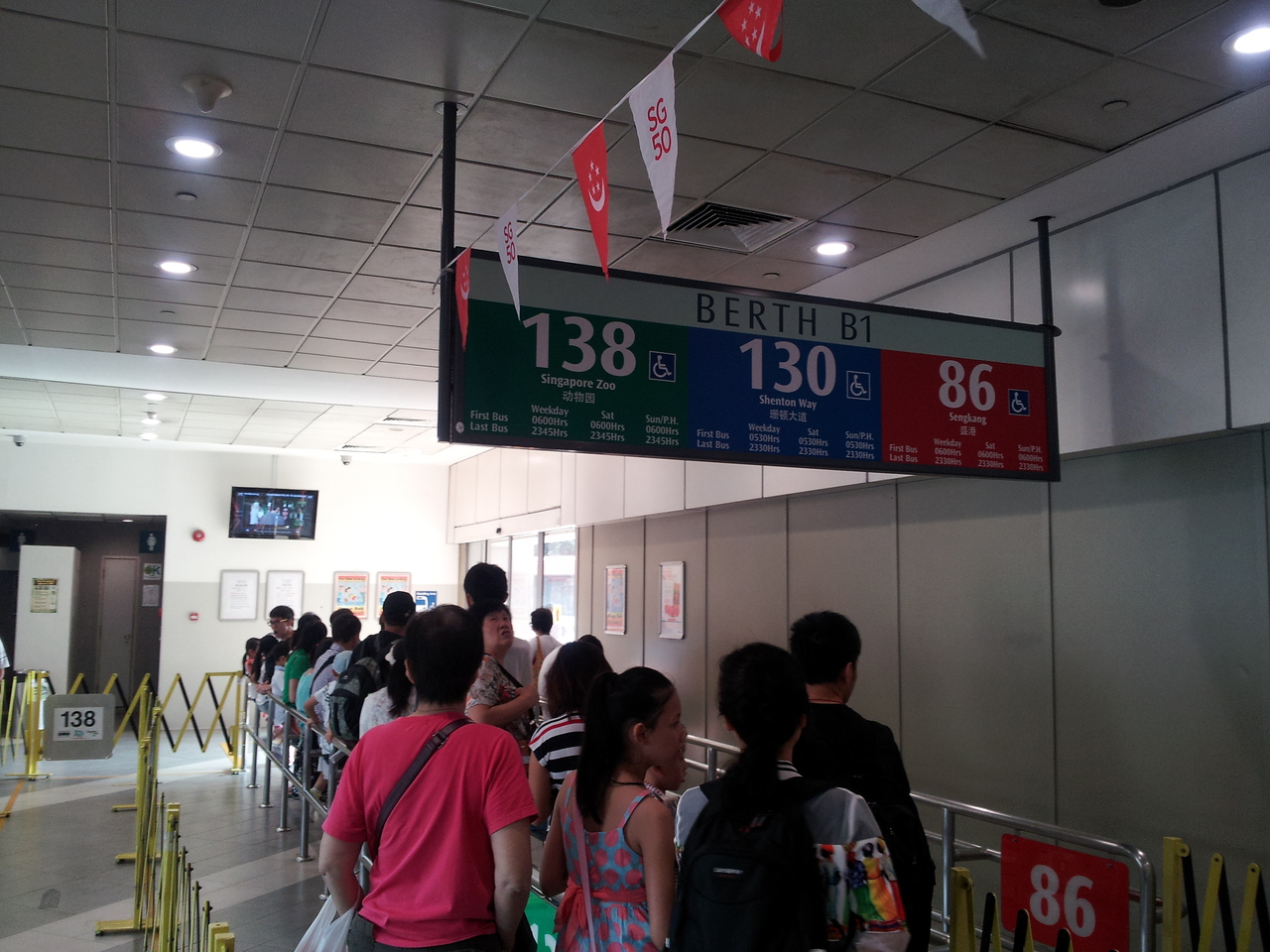 ターミナル内を真っ直ぐ進み突き当りを右に曲がって1番奥の赤で138のレーンが動物園行きのバスです。