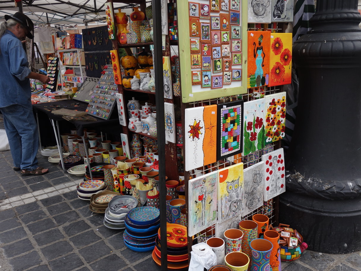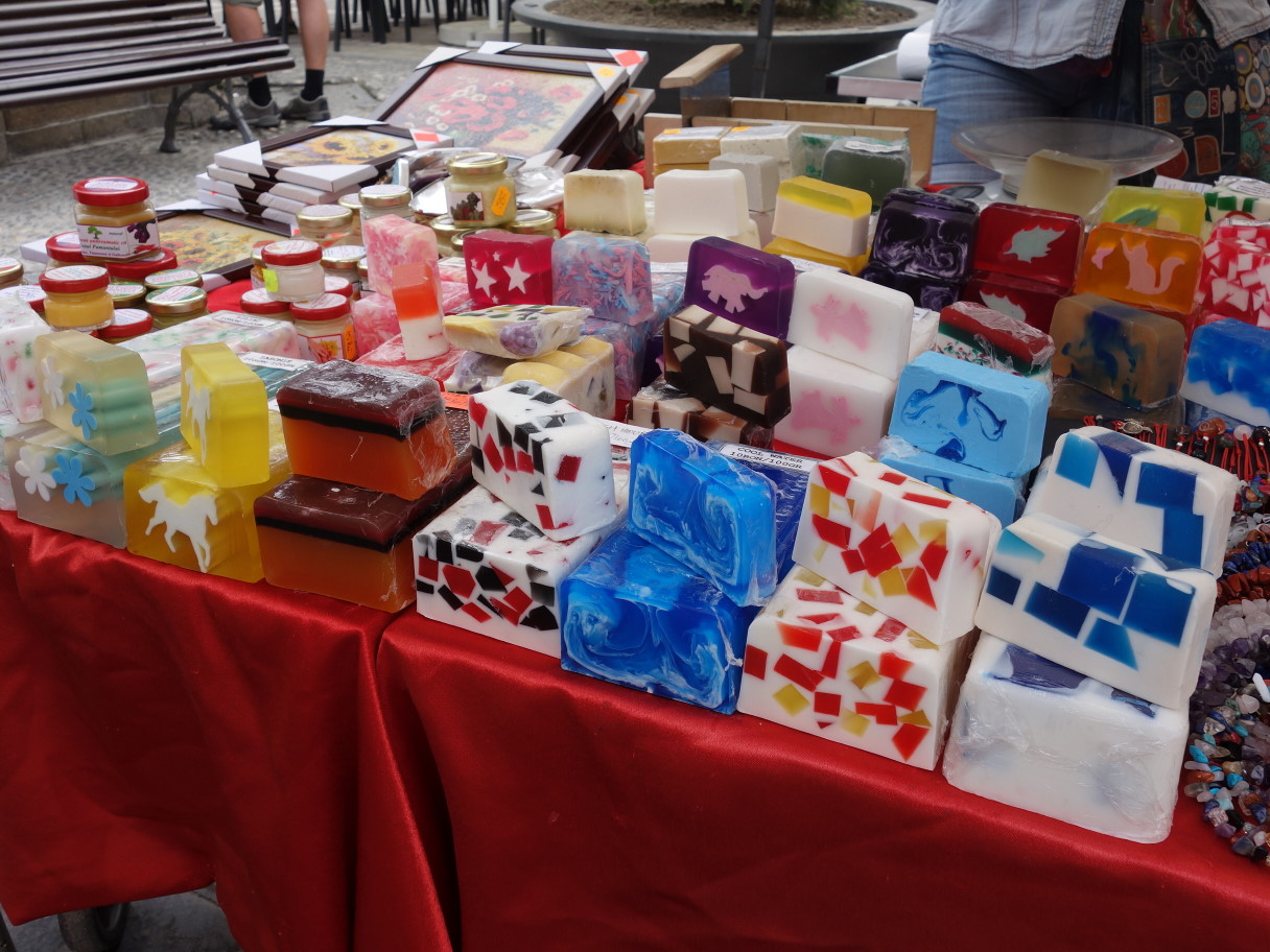 午前中に広場にマーケットがたちます。地元の人向けの商品だけでなく、ちょっとした装飾品や蜂蜜、石鹸といったおみやげ物もいろいろ。手刺繍のブラウスも売っていました。少し時間をとって散策するのもいいと思います。