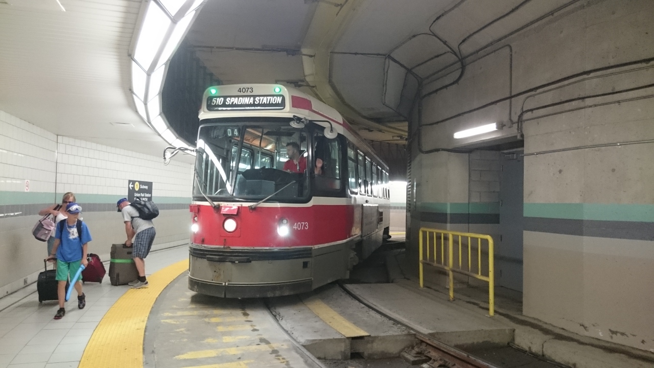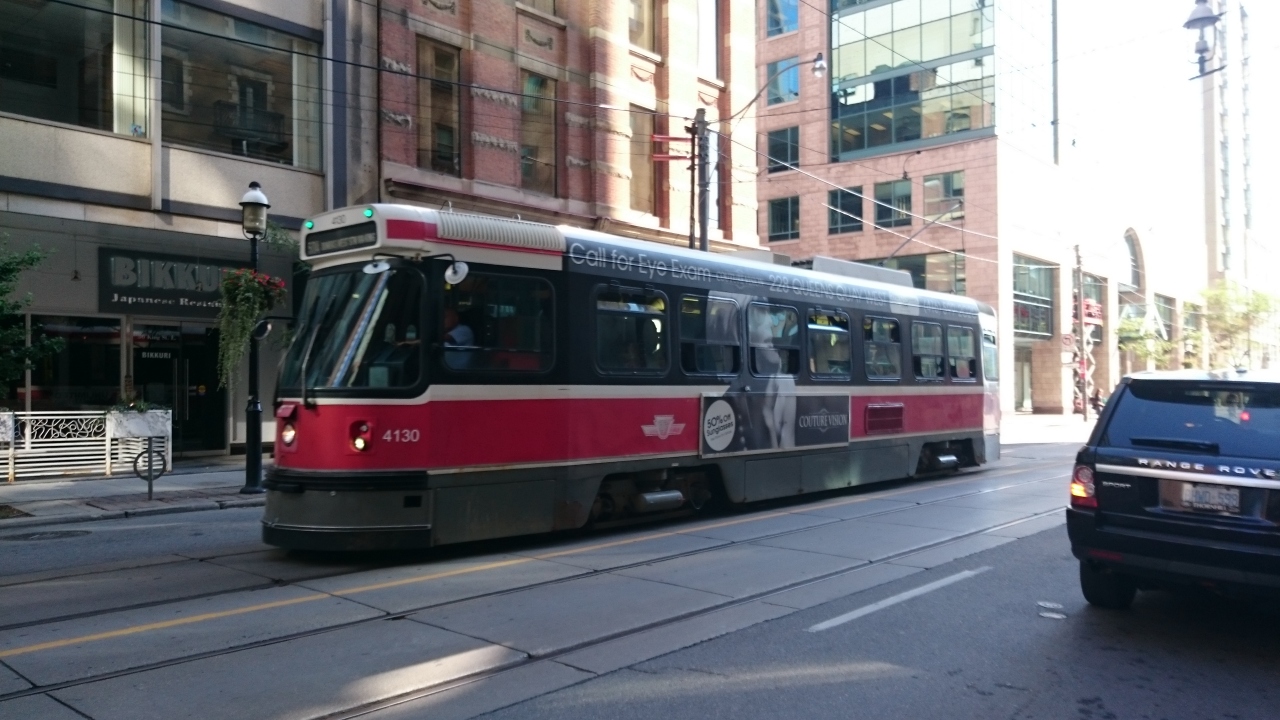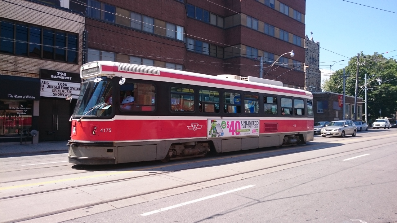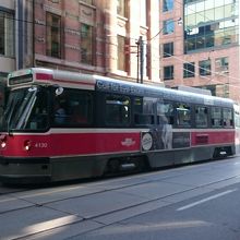 トロントのダウンタウンの主要道路を行き来しており、地下鉄やバスと同じTTCが運航しているので、運賃は共通で地下鉄やバスからの乗り換えも可能です。全部で11路線あり、停留所はおおかた1ブロックごとにあるので、街歩きには便利。Union駅周辺は地下に駅があります。毎朝5時半くらいから深夜1時くらいまで運転されています。降りる際は車内にあるひもを引っ張ると下車の合図になります。路線がややこしいので、路線図を貰うと便利です。車両は旧型の車両が多いですが、最近では低床式のタイプの車両もデビューしました。