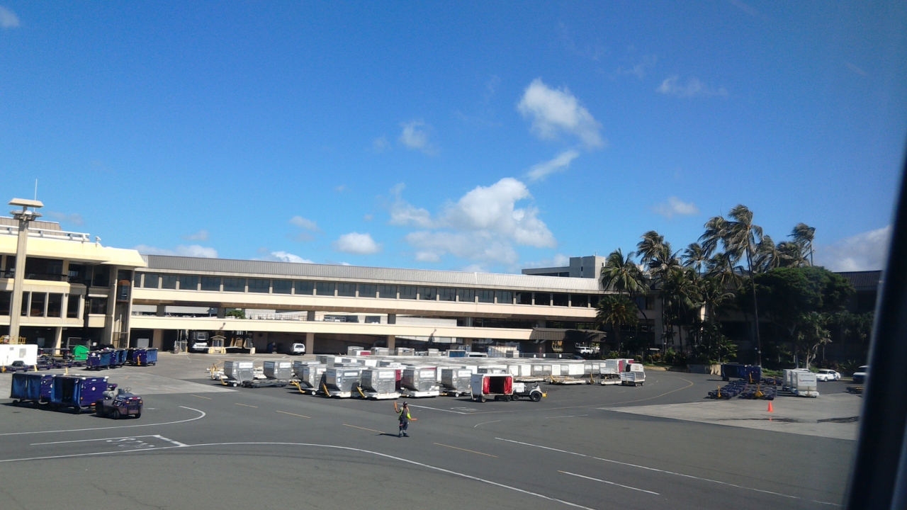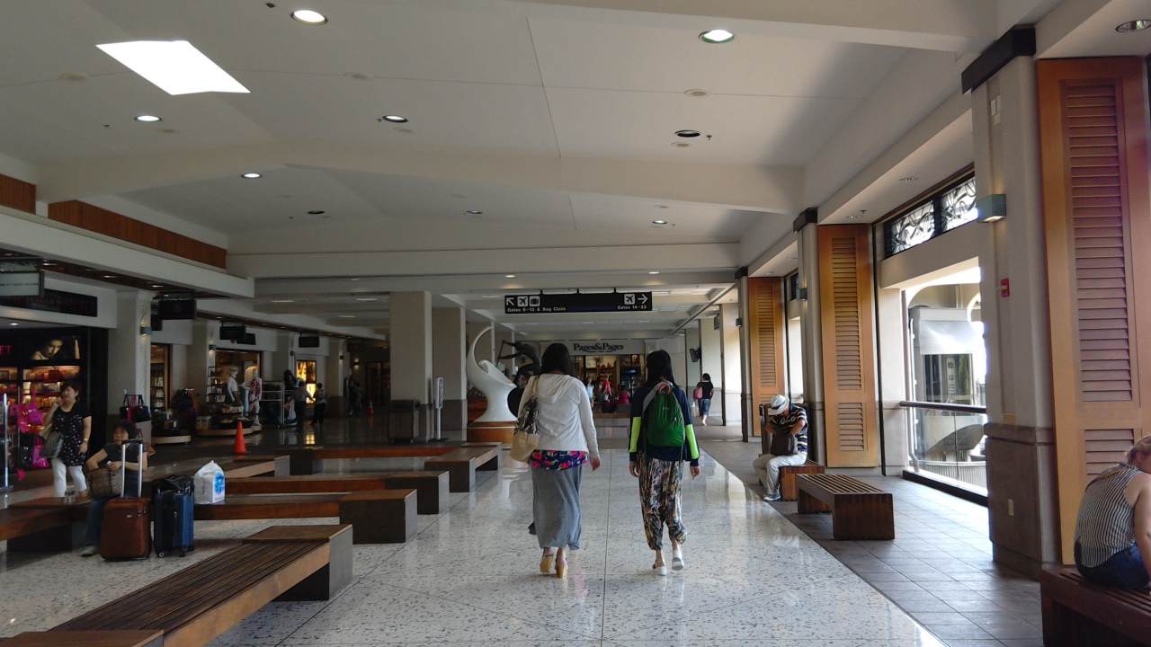 2015年のサマーバケーション・ハワイ島で成田空港からJAL便でホノルル空港に到着し入国審査してハワイアンエアライン国内線・コナ空港行きの乗り換え時と