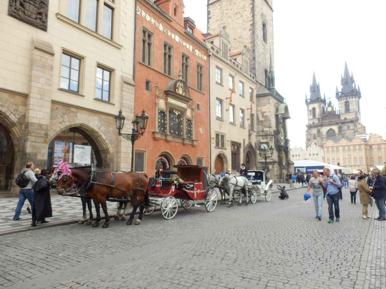 王の道は王様の戴冠式の行進が行われた通りだそうで、起点は市民会館近くの火薬塔です。お土産屋さんが並ぶツェレトナー通りを抜けて旧市街広場へ、そして細い路地のカレル通りを抜けてカレル橋、マラー・ストラナ地区の聖ミクラーシュ教会の横を通ってプラハ城へ辿り着きます。プラハの観光名所がぎっしり詰まった通りですので、滞在期間が短い場合はこの通りを歩くだけでも十分に観光出来ると思います。