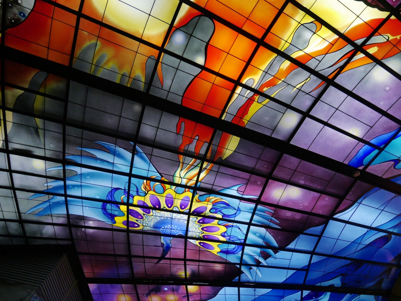 エスカレーターを降りると、虹色の世界が広がっています。芸術品です。