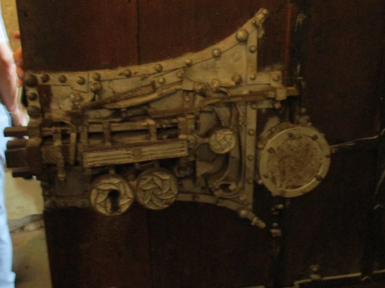 教会内部のフレスコ画も一見の価値があり、祭壇横の聖器室の入り口ドアの鍵も複雑で19の錠がかかっており、1900年の万博で1等賞が贈られたそうです。