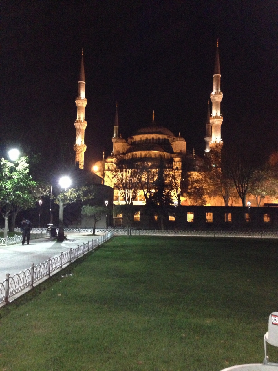 とても大きなモスクです。イスタンブールには沢山のモスクがありますが、これほど綺麗なモスクはないとおもいます。外からも綺麗ですが、中のブルーの色使いが素敵です。夜のライトアップも幻想的でした。朝早く行くとほとんど人がいなくて綺麗な写真が撮れます。