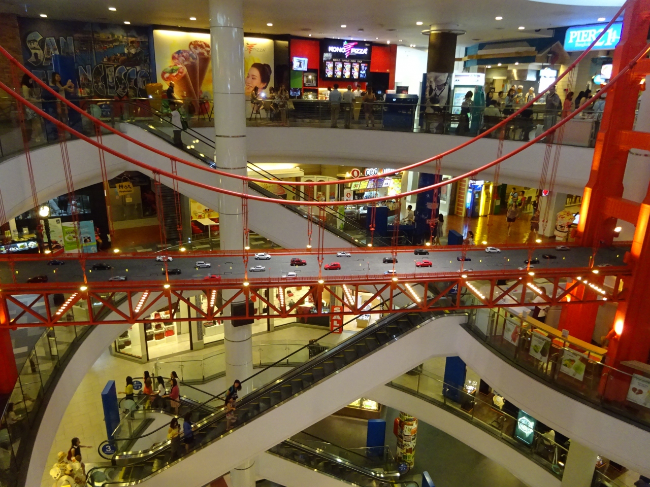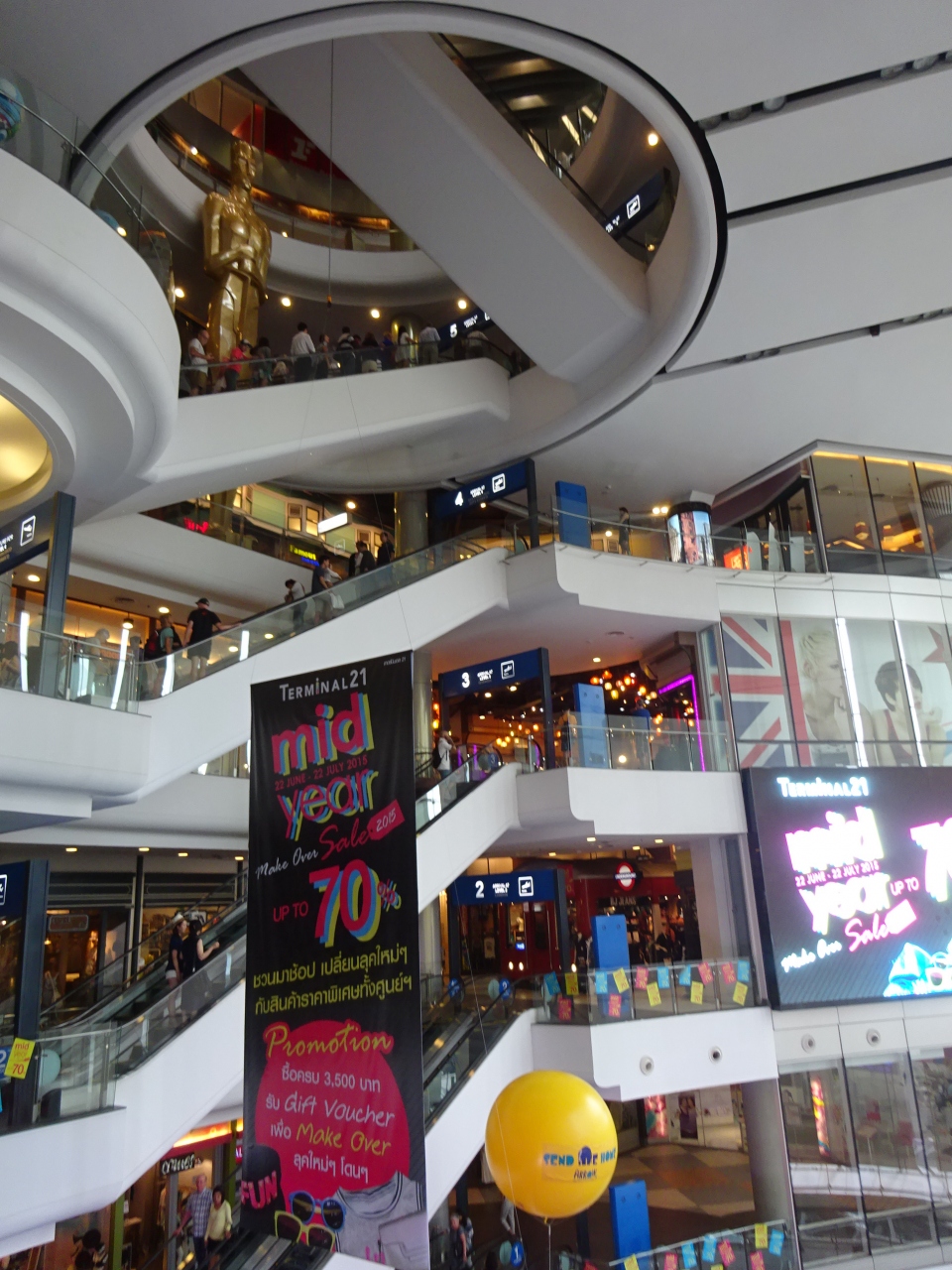 2011年10月にオープンした「ターミナル21」は、9階建てのショッピングセンターがあり、人がどんどん入っています。ショッピングセンターというだけでなく、観光名所といえる施設です。特徴としては、空港ターミナルをテーマにしており、各階ごとに日本は東京、アメリカはサンフランシスコとハイウッド、ヨーロッパはパリやローマ、トルコはイスタンブールと名をつけて設備を各国のイメージとしています。各階ごとのトイレも興味深いです。ファッションやレストラン街のほかにブティック、映画館、スーパーマーケット、フィットネスジムなど充実しています。ちなみに東京は山手線の駅名がずらっと記載されています。ご覧あれ。